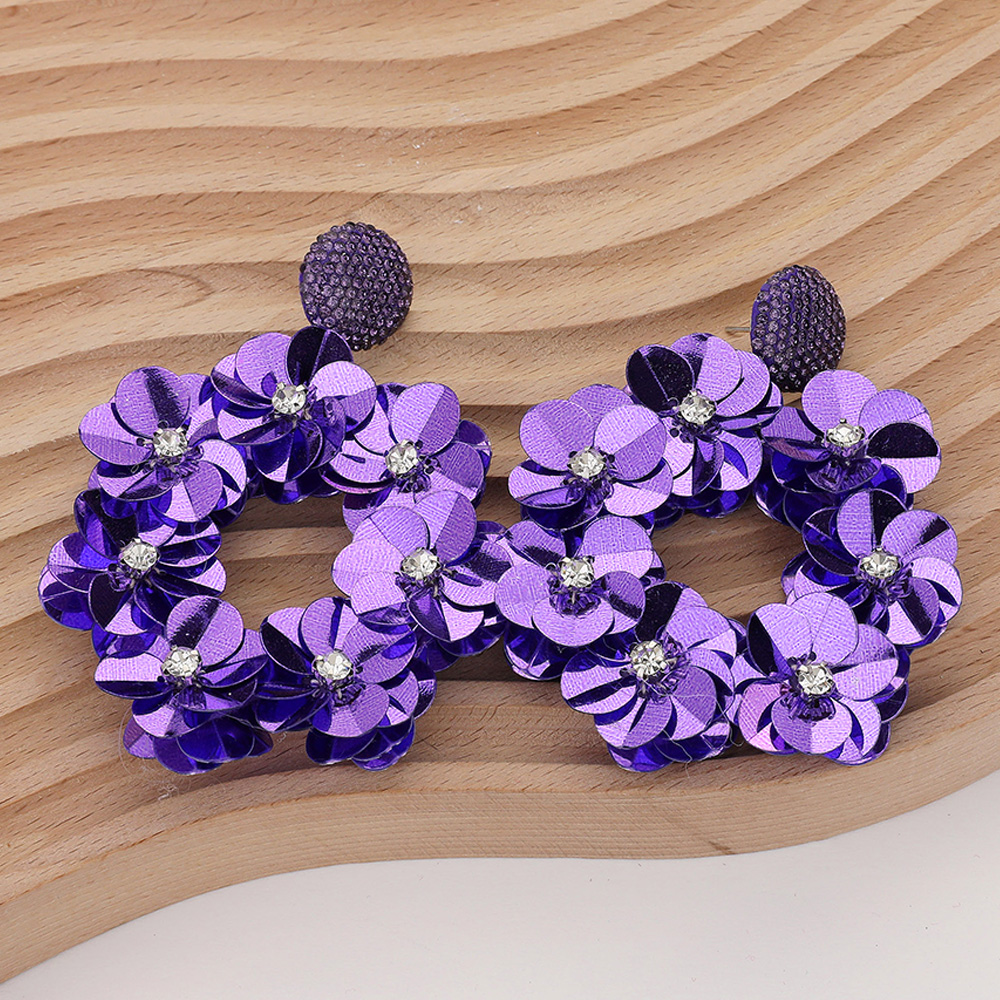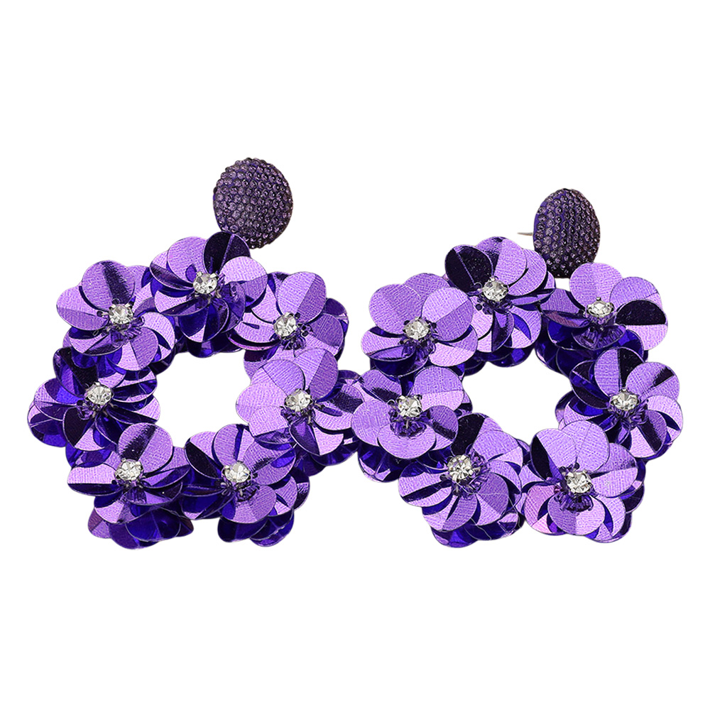 Stone Pointed Metal Cutout Petal Dropdown Earrings