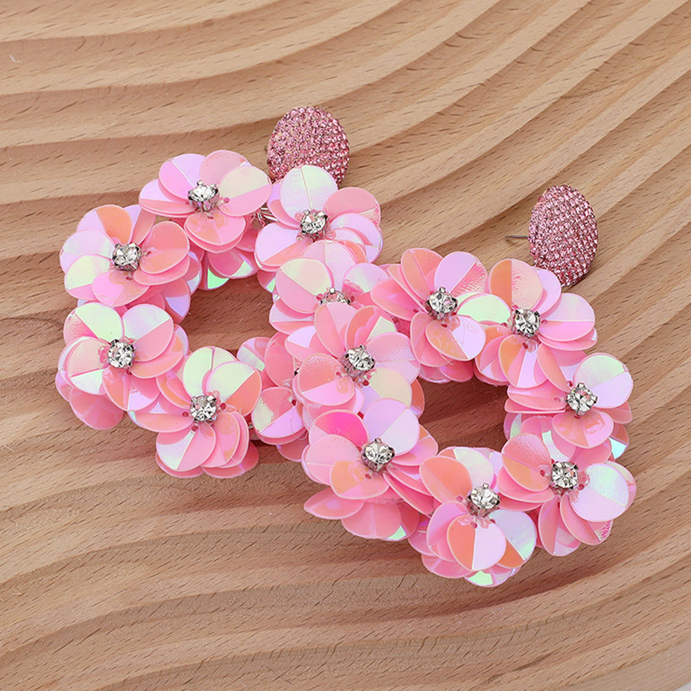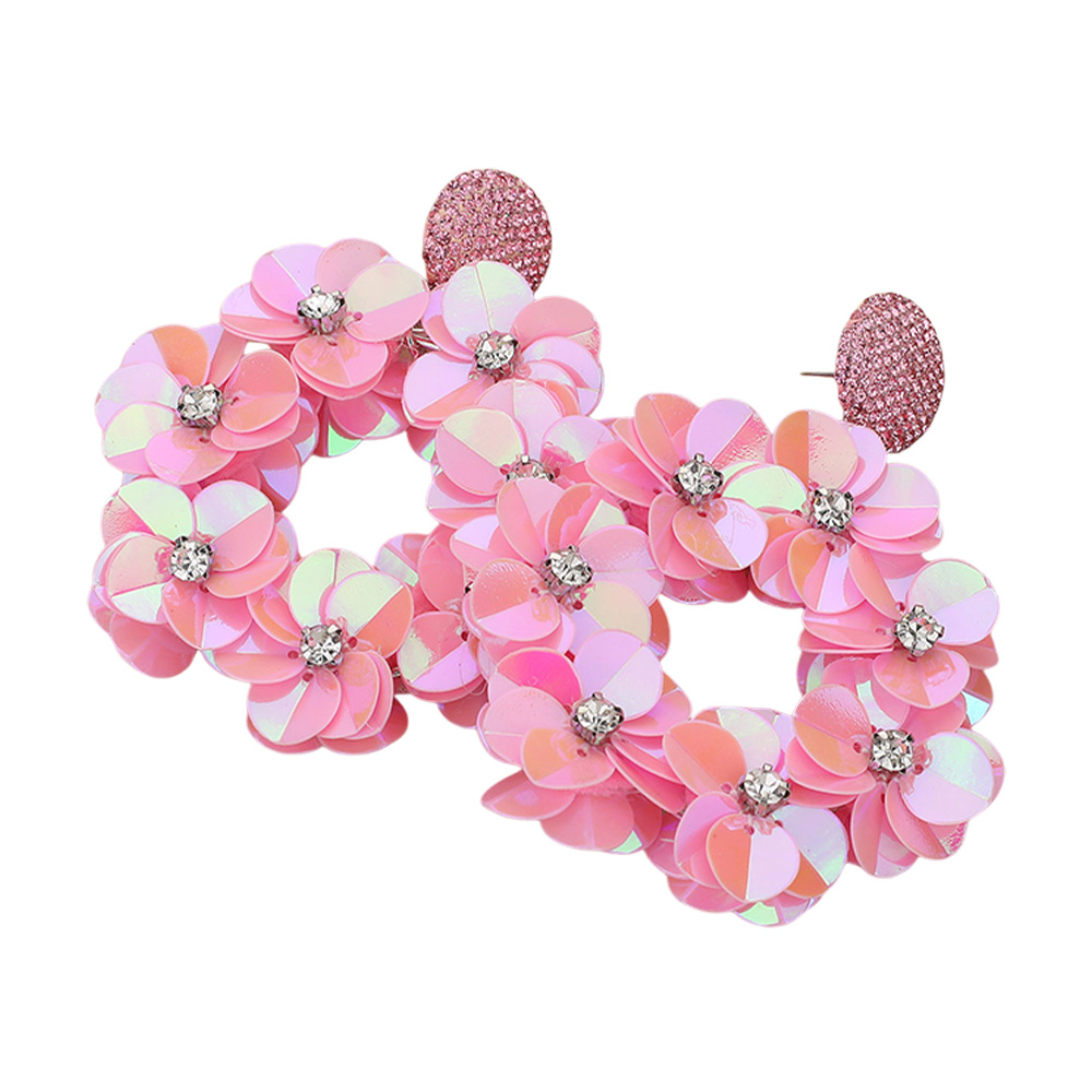 Chunky Pear Crystal Floral Evening Drop Earrings