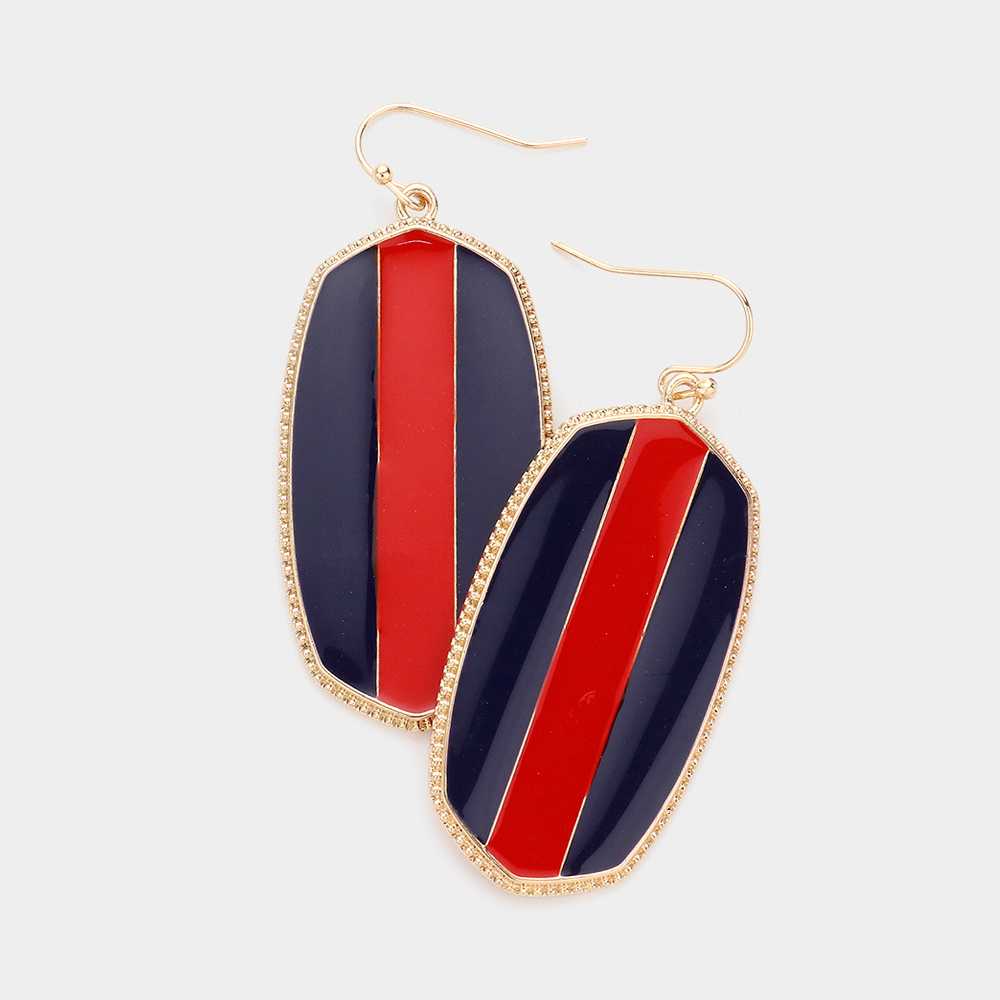 Game Day Color Block Enamel Hexagon Dangle Earrings