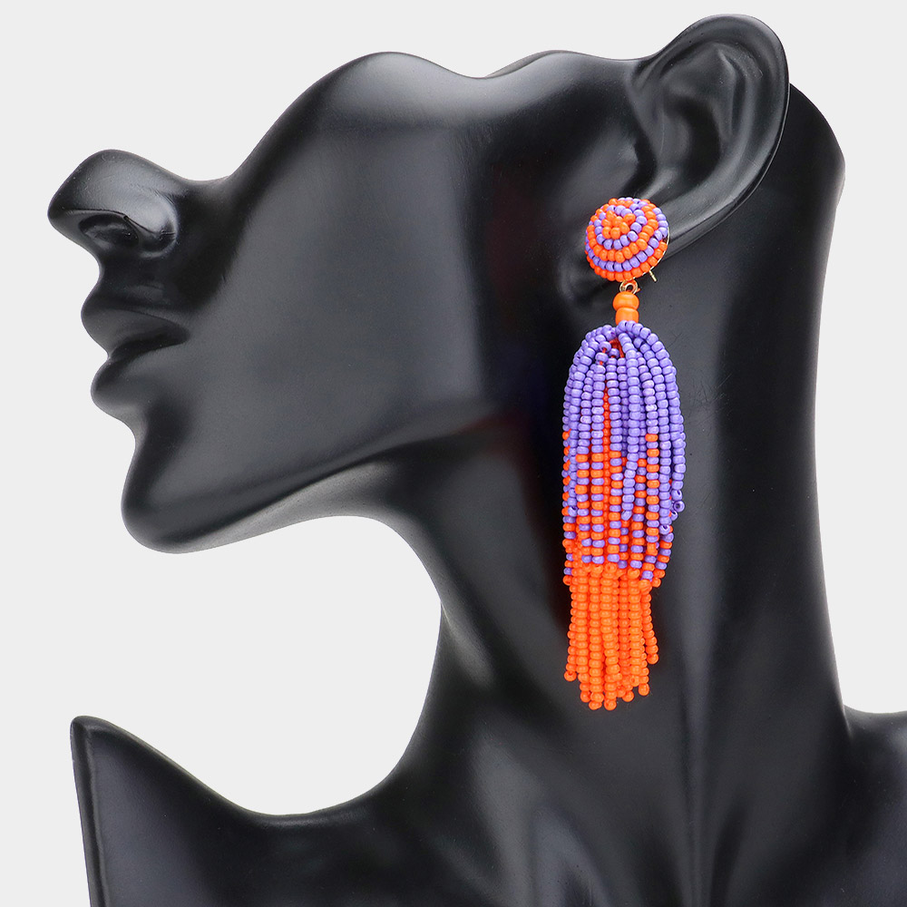 3Pairs - Round Stone Metal Hoop Tassel Fringe Earrings