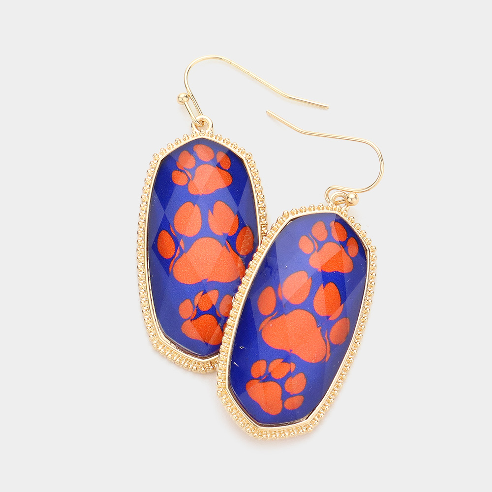 Game Day Triple Paw Pointed Hexagon Dangle Earrings