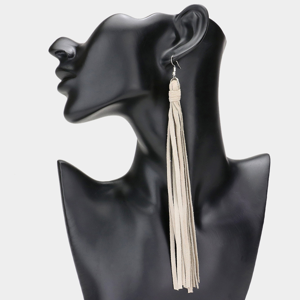 Thread Wrapped Oval Hoop Long Drop Chain Tassel Necklace