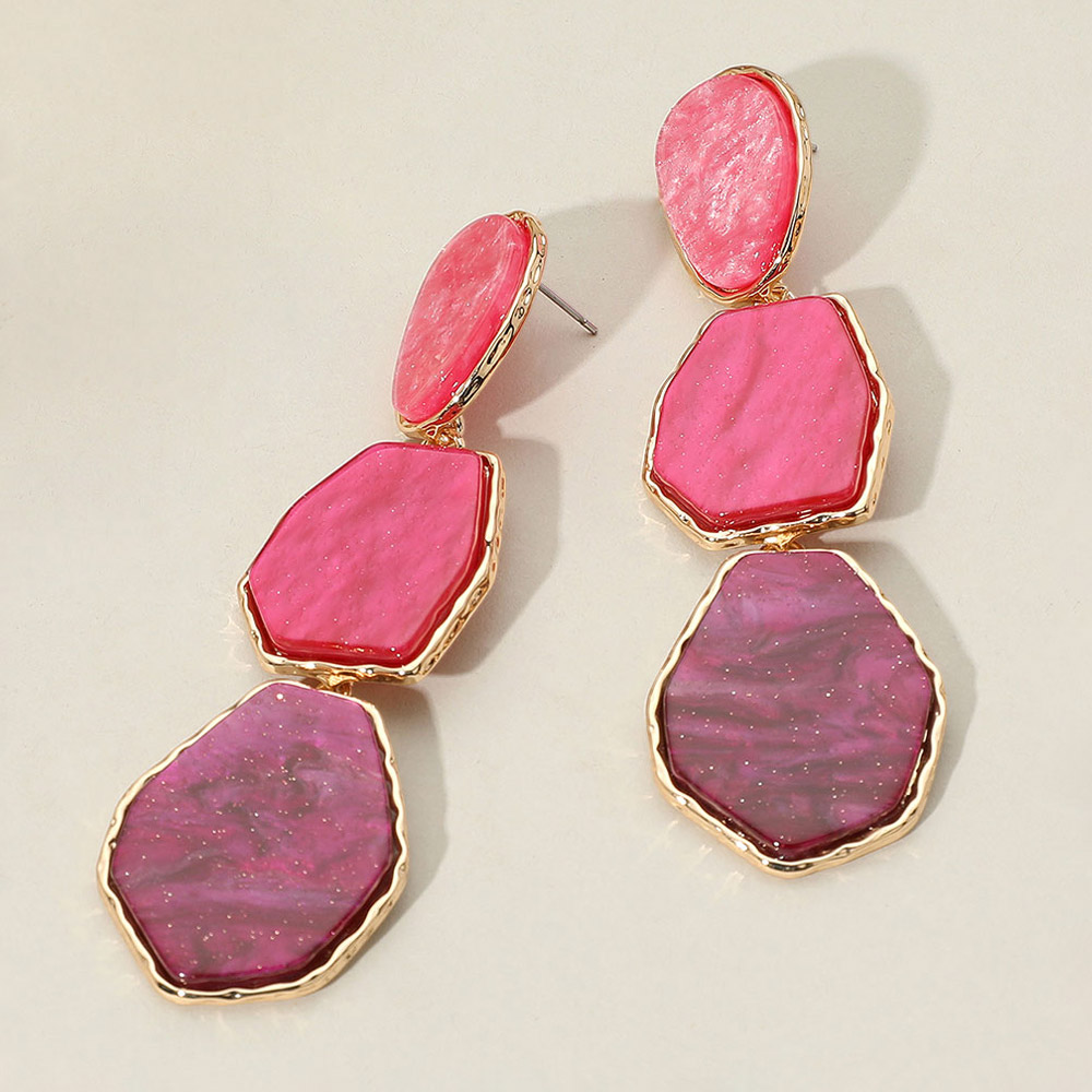 Geometric Glittered Resin Plate Link Drop Dangle Earrings