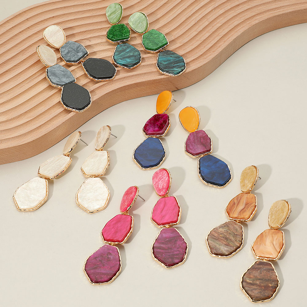 Geometric Glittered Resin Plate Link Drop Dangle Earrings