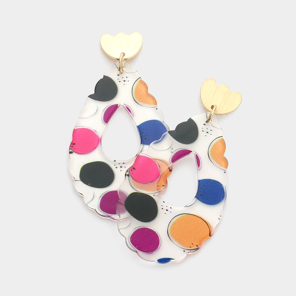 Geometric Patterned Lucite Open Teardrop Dangle Earrings