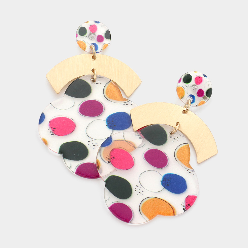 Geometric Patterned Lucite Open Teardrop Dangle Earrings