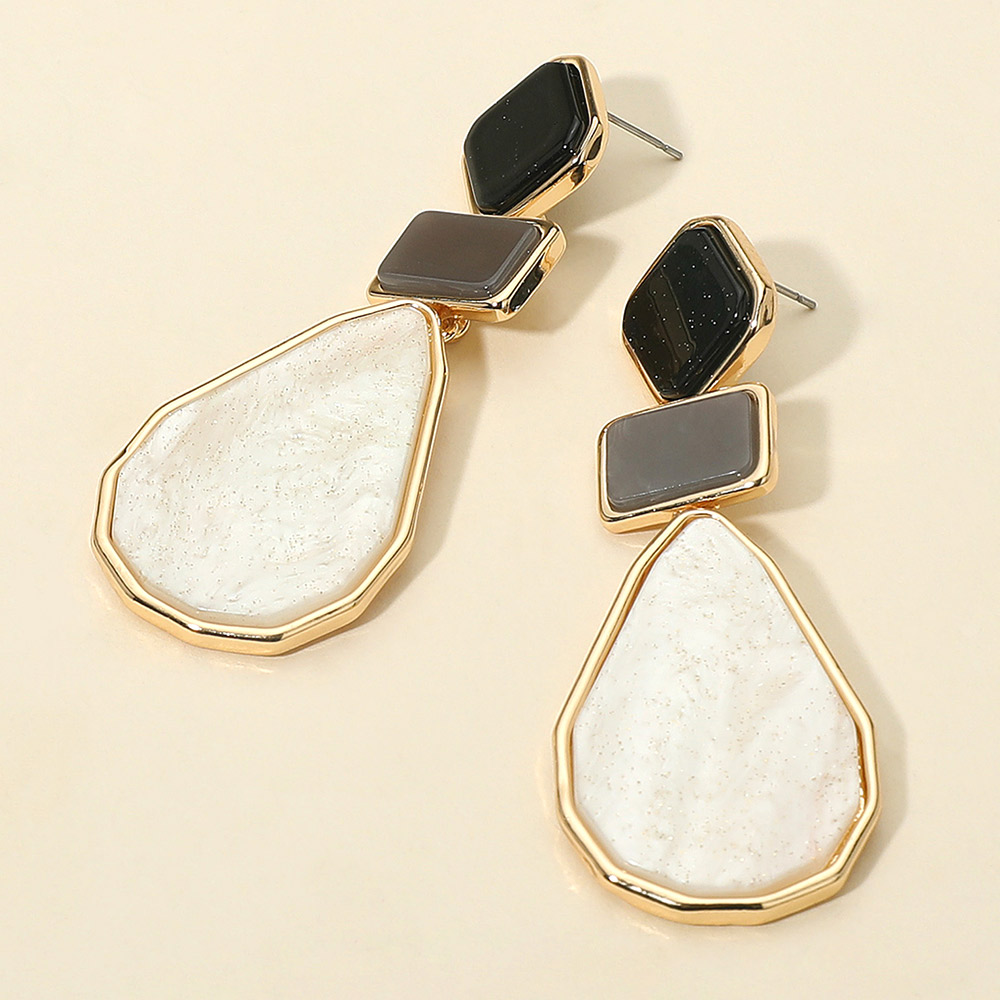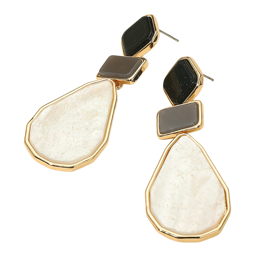 Details • Size : 1.1" X 2.9" • Post Back • Bold geometric drop earrings featuring layered shapes with glossy accents. These statement earrings combine modern artistry with timeless elegance, perfect for parties, evening wear, or elevating everyday outfits. Lightweight and stylish, they add a contemporary touch to any look. • Lead and Nickel Compliant