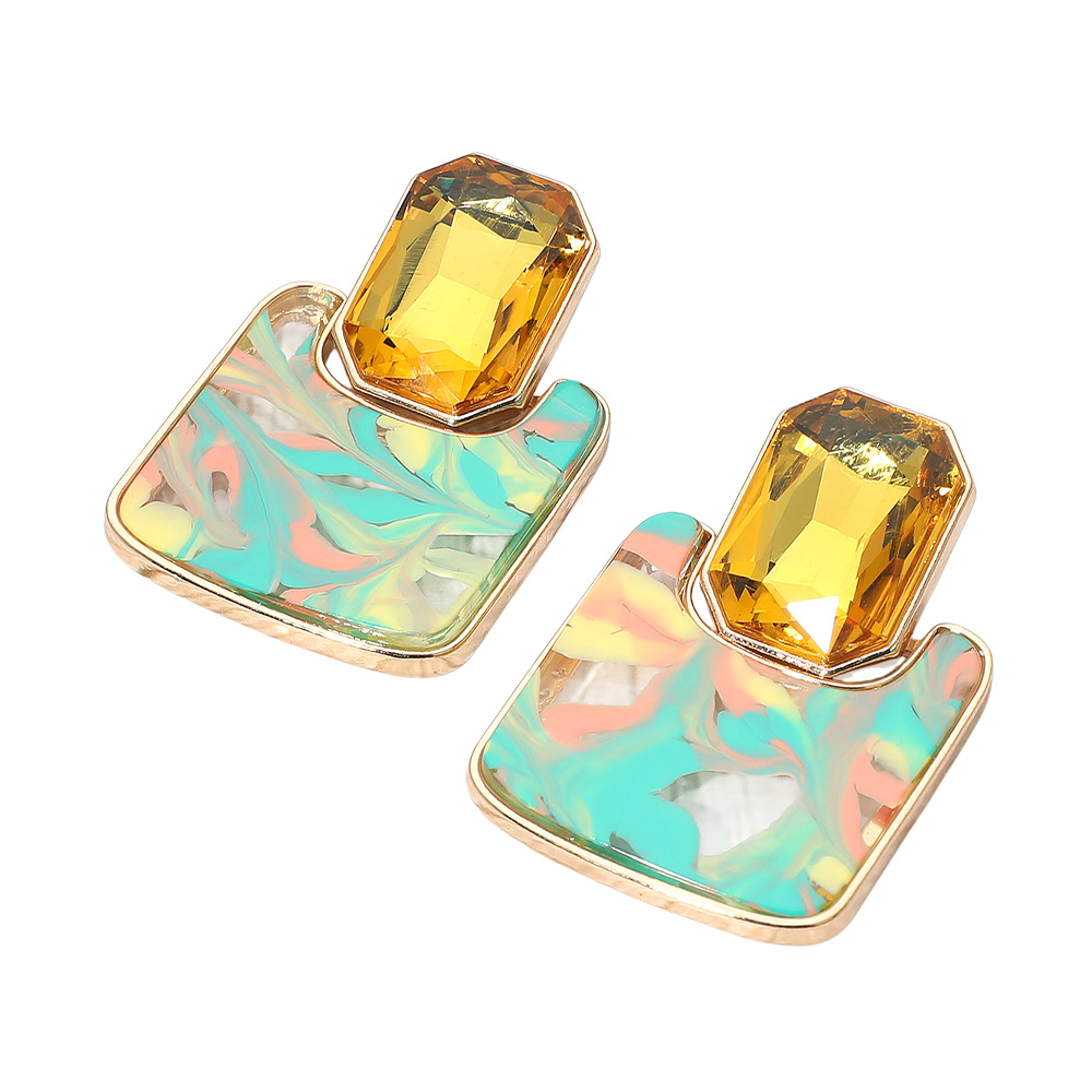 Geometric Stone Accent Printed Resin Plate Drop Earrings