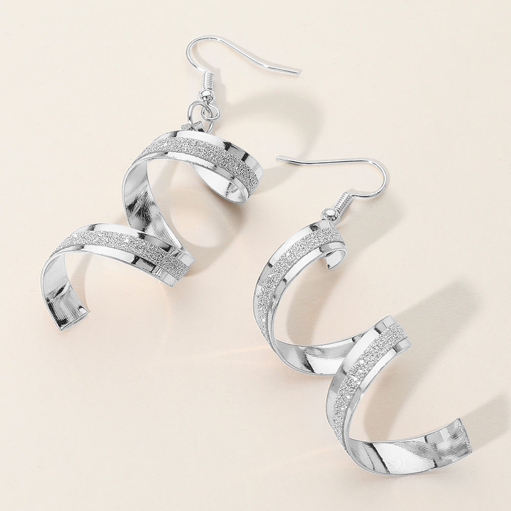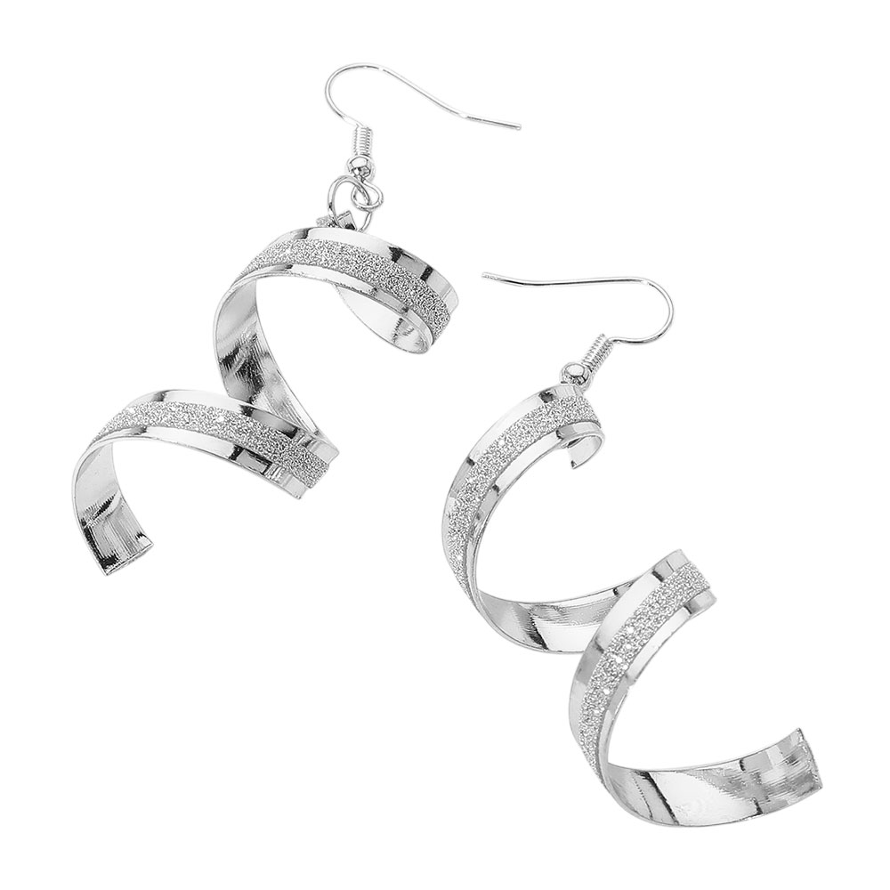 Glitter Accent Spiral Metal Ribbon Drop Dangle Earrings