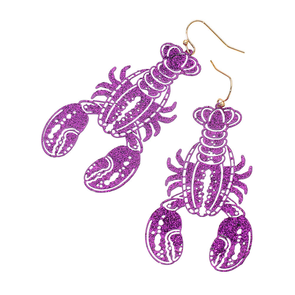 Glitter Cutout Mardi Gras Lobster Charm Drop Earrings