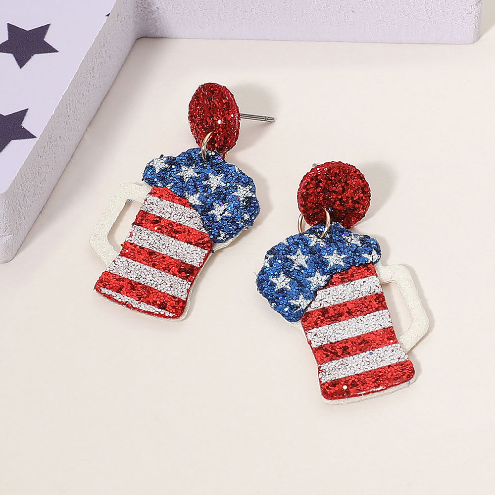 Glittered American USA Flag Beer Glass Dangle Earrings