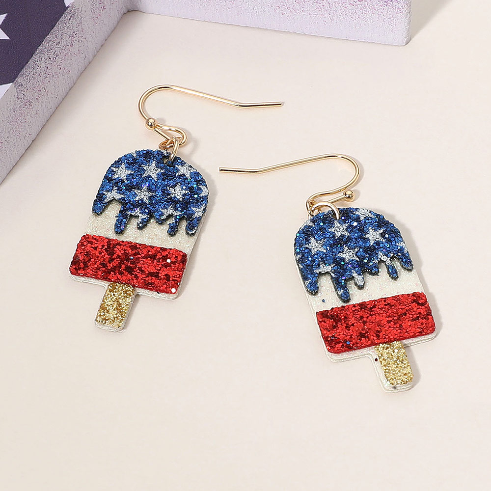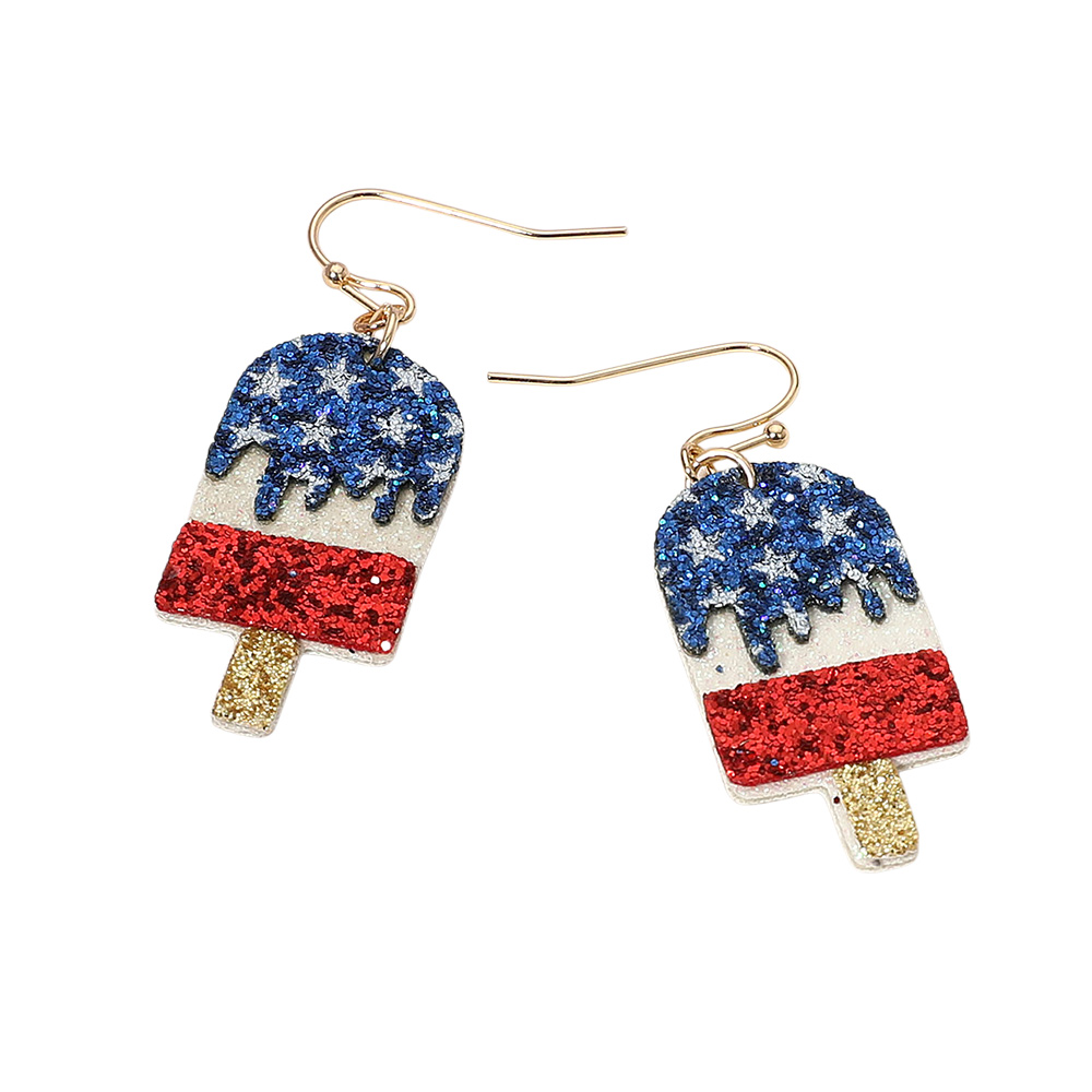 Glittered American USA Flag Popsicle Dangle Earrings