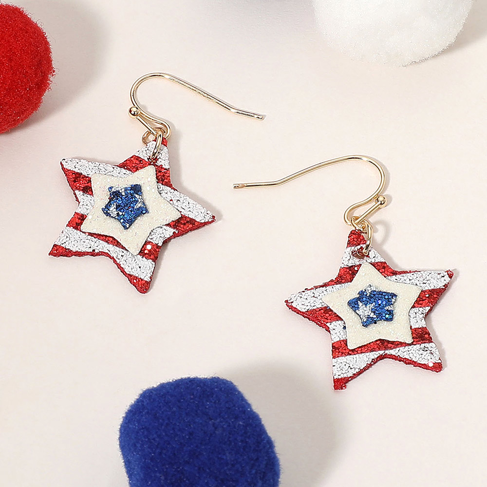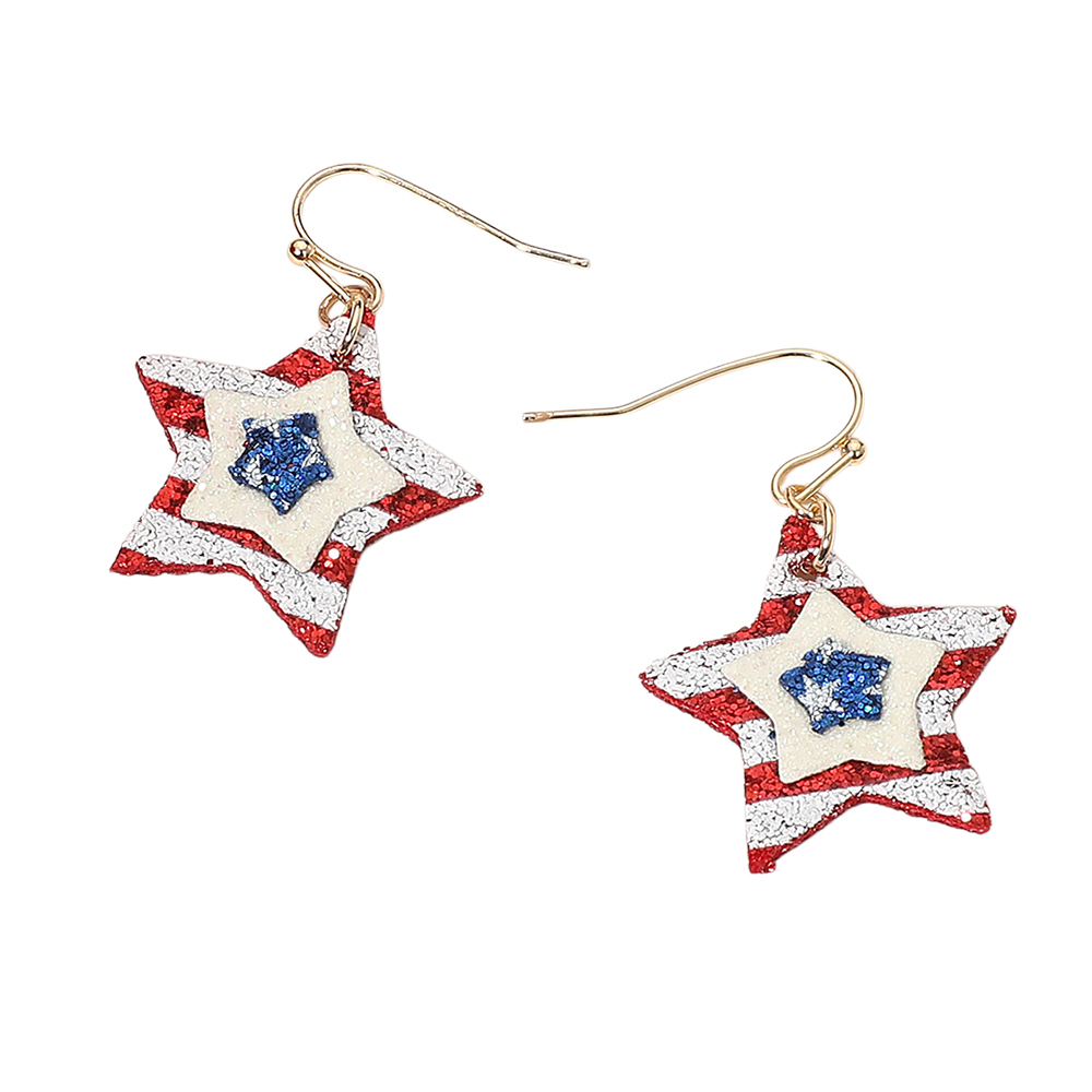 Glittered American USA Flag Star Dangle Earrings