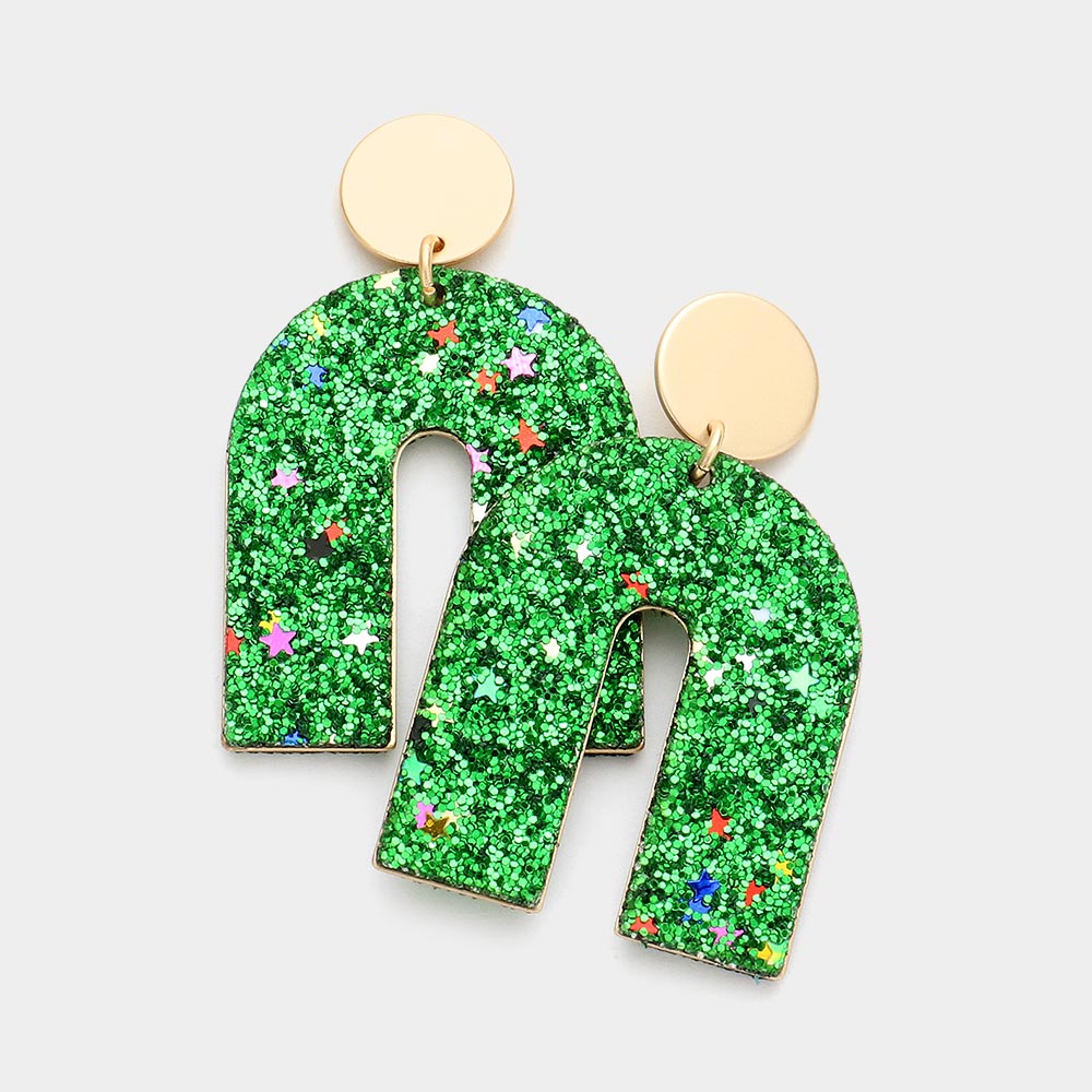 Flower Accented Glittered Tropical Leaf Link Dangle Earrings