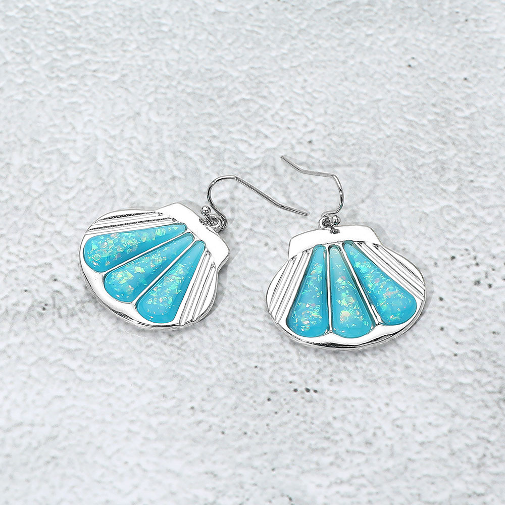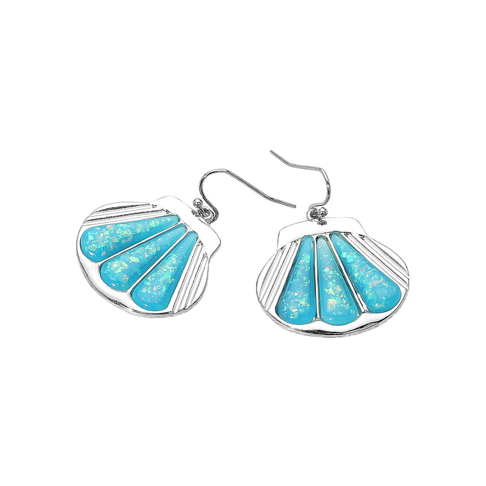 Glittered Enamel Accent Sea Shell Dangle Earrings