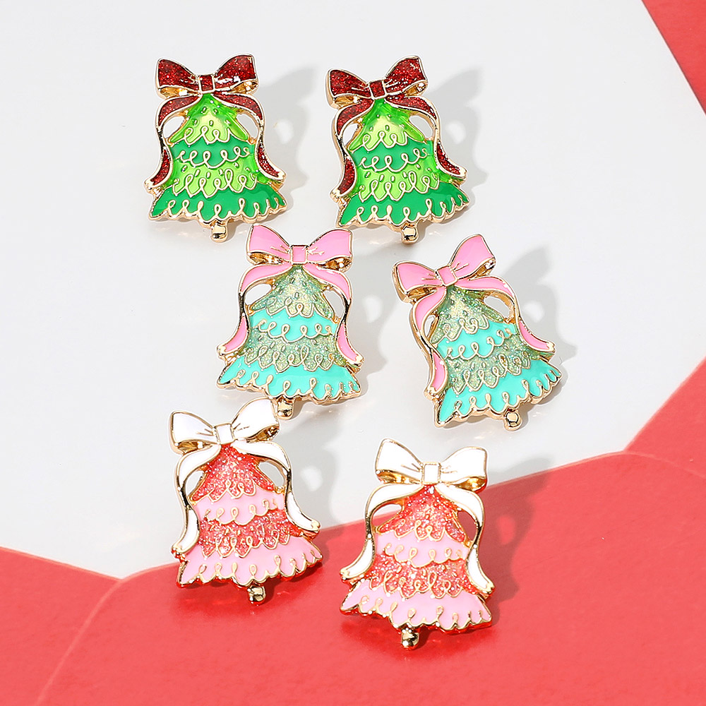 • Celebrate the festive season with charming Christmas tree earrings topped with a glittery bow design. These whimsical studs add a playful touch to your holiday outfits and make a cheerful accessory for parties or gifting.