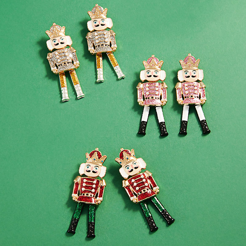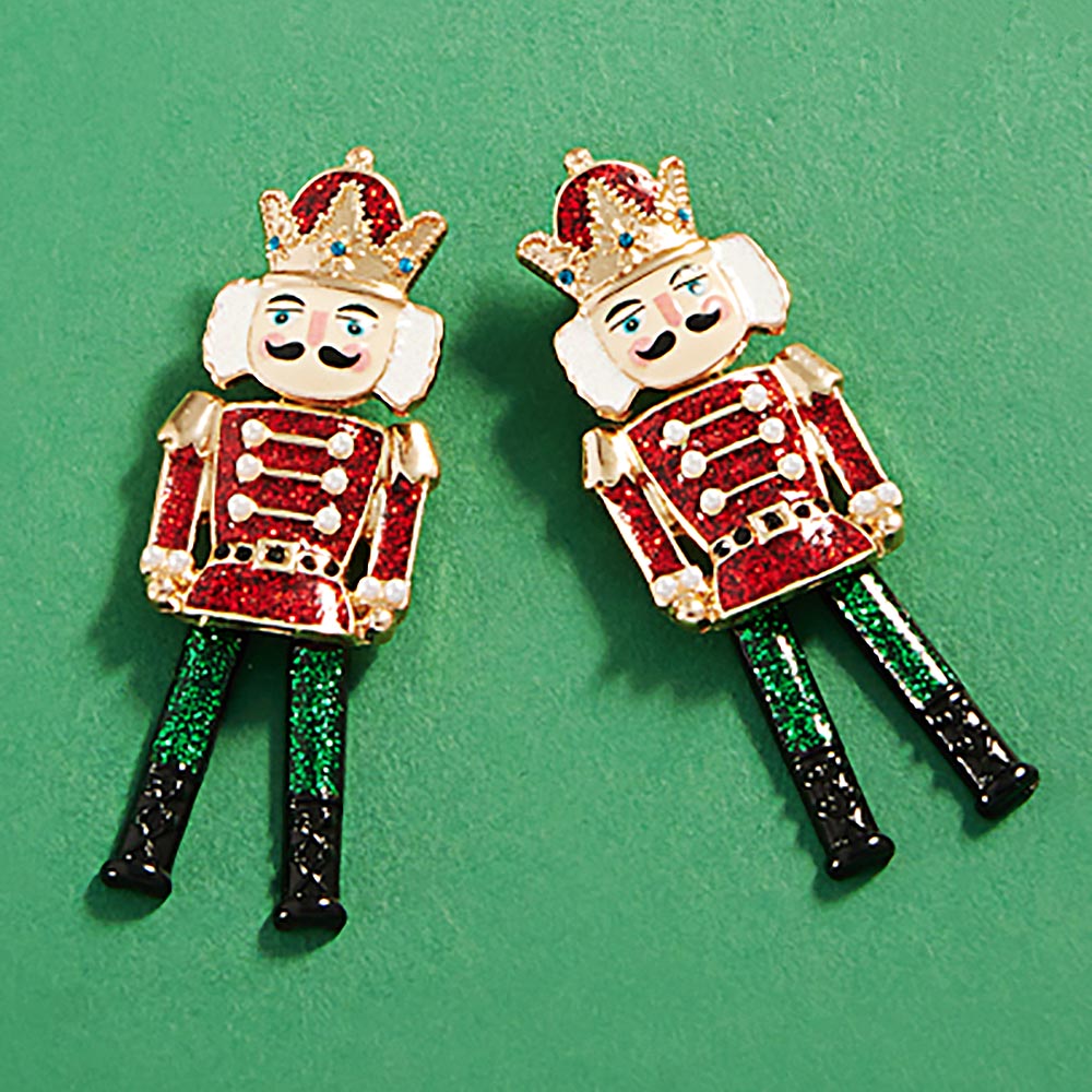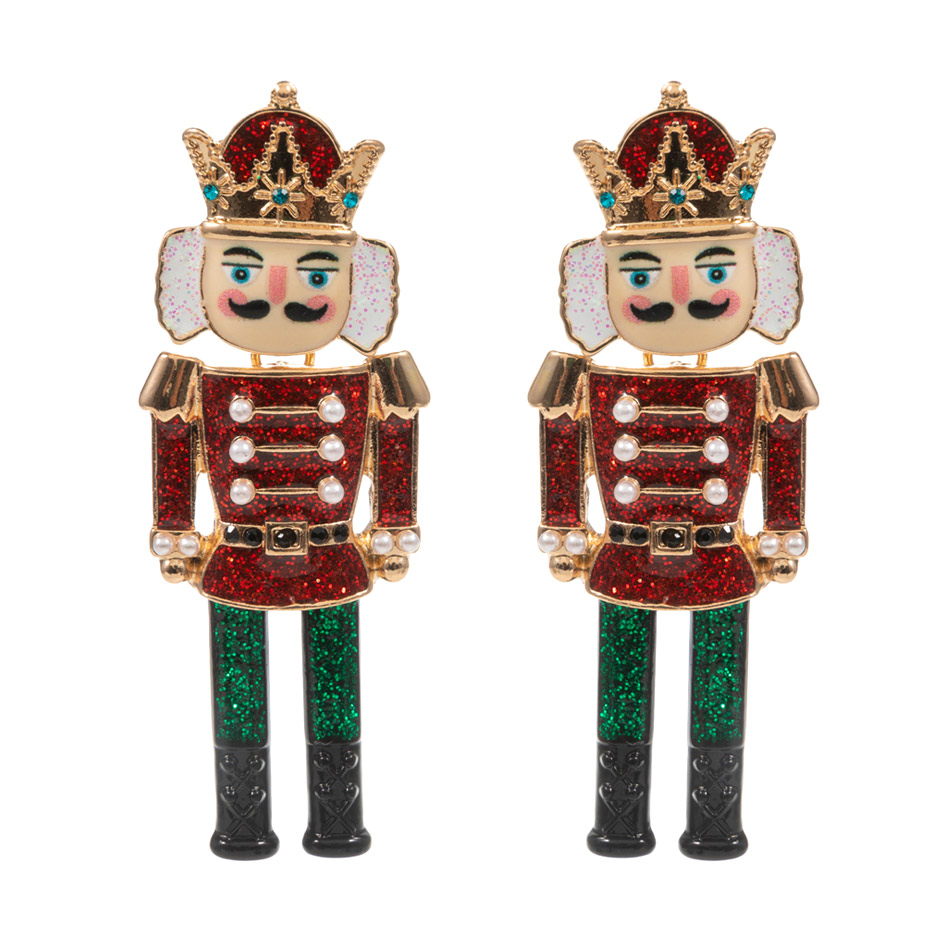 Details • Size : 0.75" X 2.2" • Titanium Post Back • Add festive flair to your look with these classic nutcracker dangle earrings, designed with rich detailing and bold seasonal accents. Ideal for holiday parties, Christmas celebrations, or gifting, these statement earrings bring cheer and charm to any winter wardrobe. • Lead and Nickel Compliant • Hypoallergenic