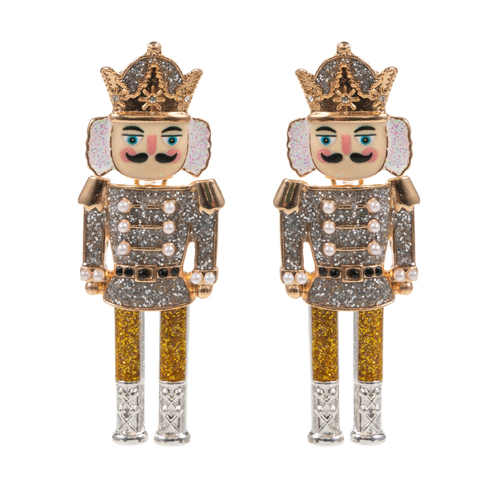 Details • Size : 0.75" X 2.2" • Titanium Post Back • Add festive flair to your look with these classic nutcracker dangle earrings, designed with rich detailing and bold seasonal accents. Ideal for holiday parties, Christmas celebrations, or gifting, these statement earrings bring cheer and charm to any winter wardrobe. • Lead and Nickel Compliant • Hypoallergenic