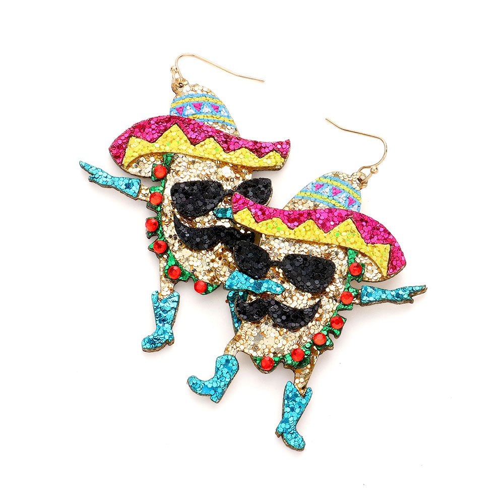 Fiestas Message Felt Back Beaded Hat Dangle Earrings