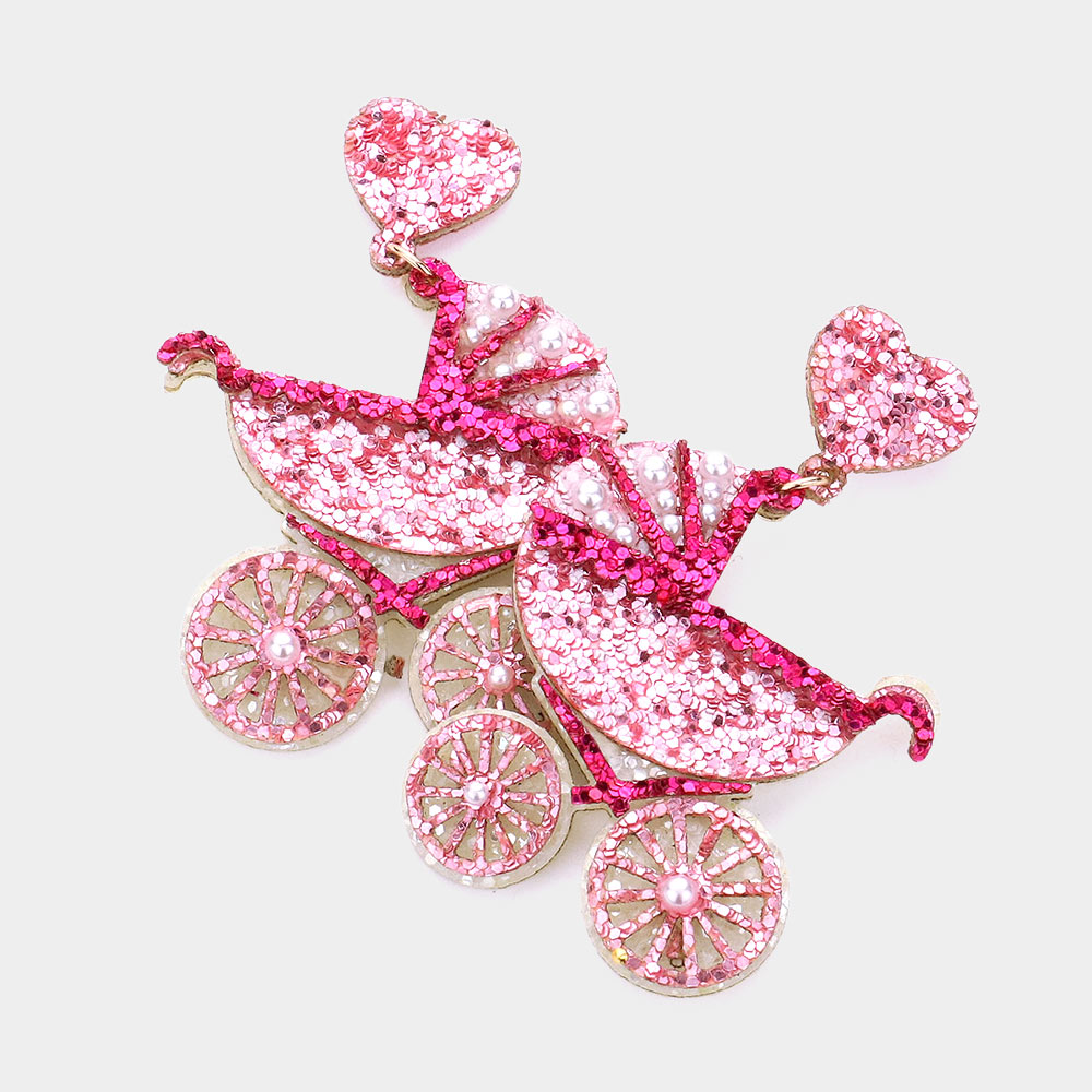 Boy or Girl Message Glittered Baby Bodysuit Dangle Earrings