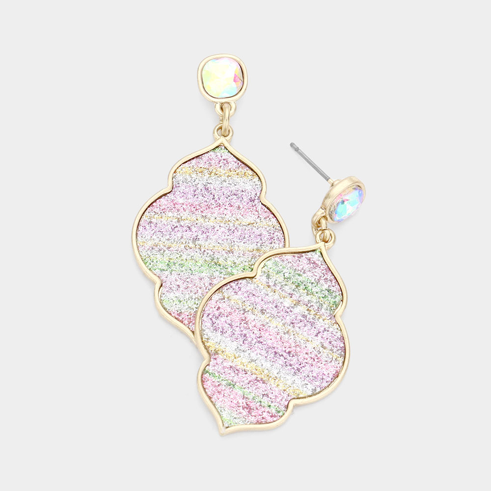 Beaded Flower Teardrop Stone Link Dangle Earrings