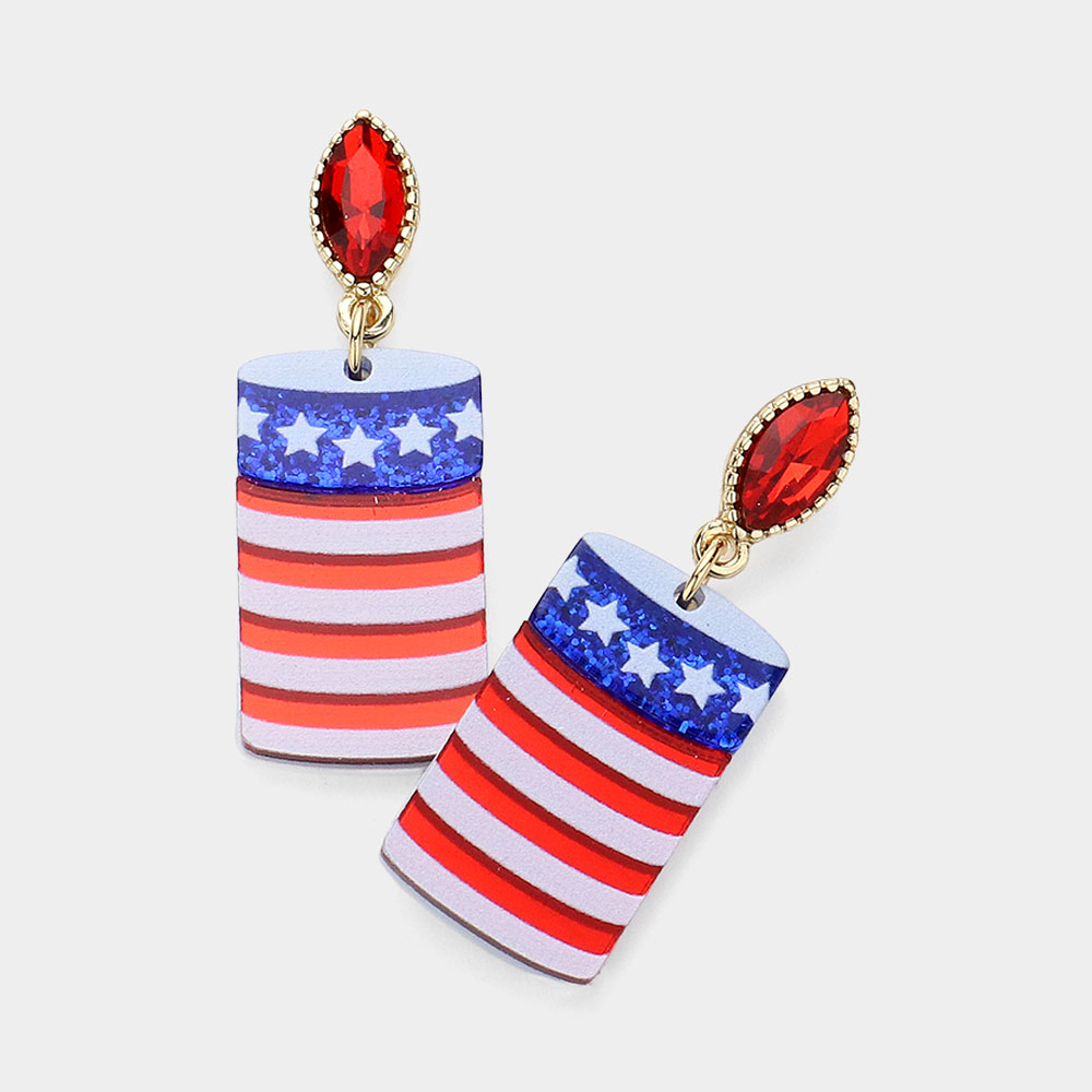 Glittered Resin American USA Flag Beer Can Dangle Earrings