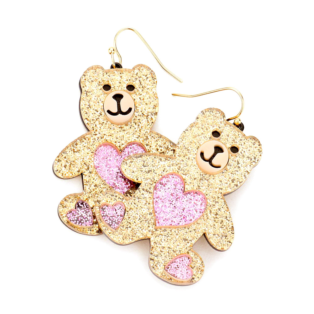 Glittered Resin Bear Dangle Earrings
