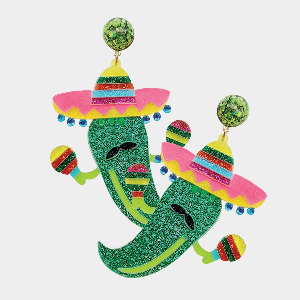 Felt Back Beaded Hat Mustache Cactus Dangle Earrings