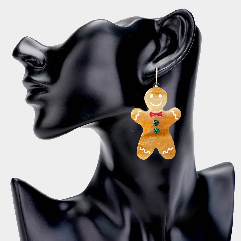 Glittered Resin Gingerbread Man Dangle Earrings