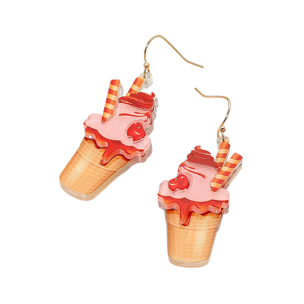 • Fun ice cream cone earrings with detailed dessert design. Lightweight and playful, perfect for adding a sweet, quirky touch to casual outfits or themed events.