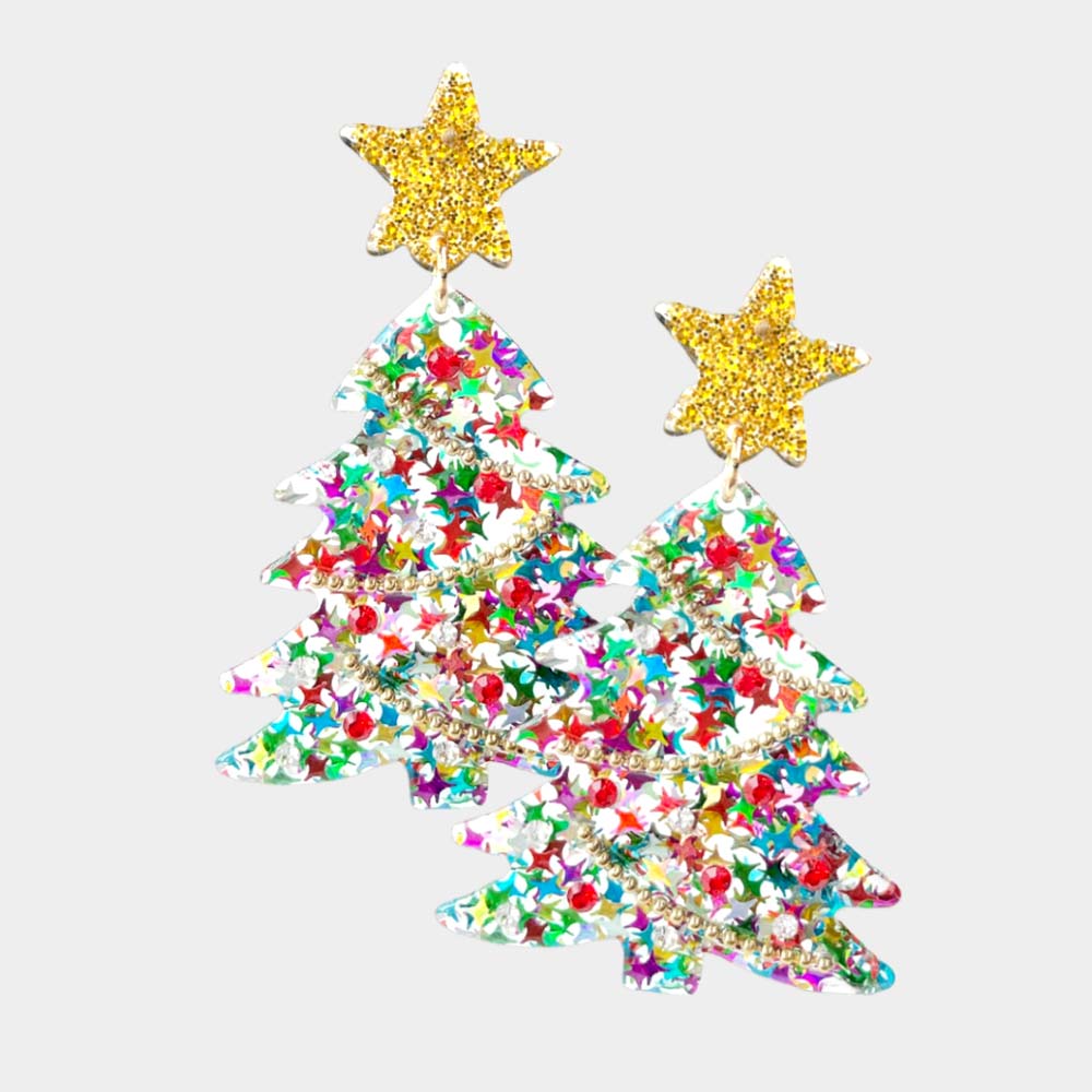 Glittered Resin Star Christmas Tree Dangle Earrings