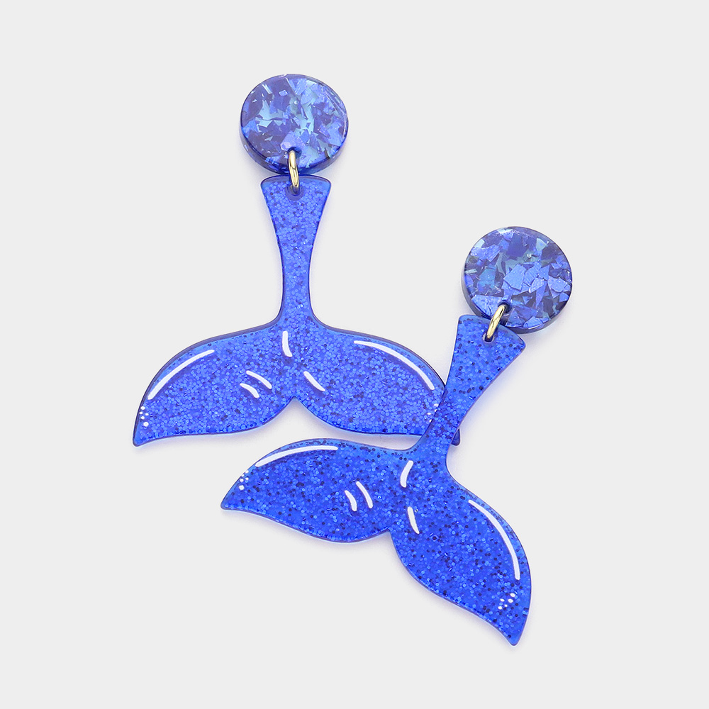 Enamel Wave Antique Metal Seashell Starfish Sand Dollar Link Dangle Earrings