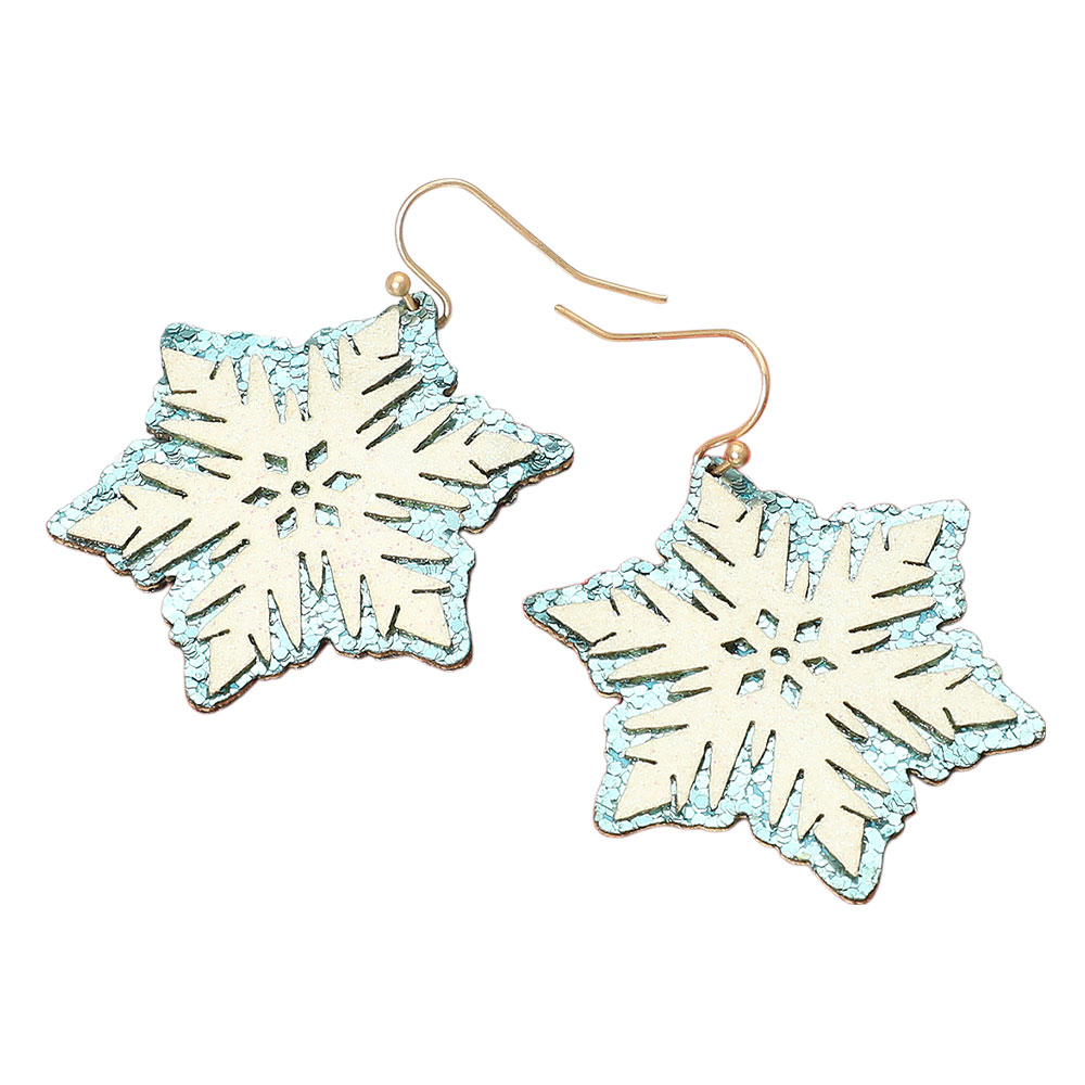 Details • Size : 1.25" X 2" • Fish Hook Back • Add a seasonal touch to your style with snowflake drop earrings perfect for winter events, holiday parties, and cozy gatherings. Lightweight and festive, these earrings make a great accessory or gift choice. • Lead and Nickel Compliant