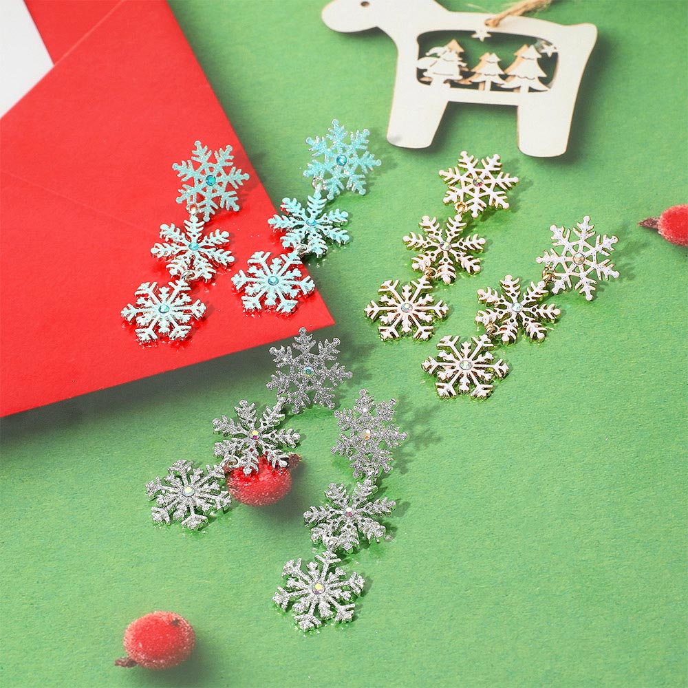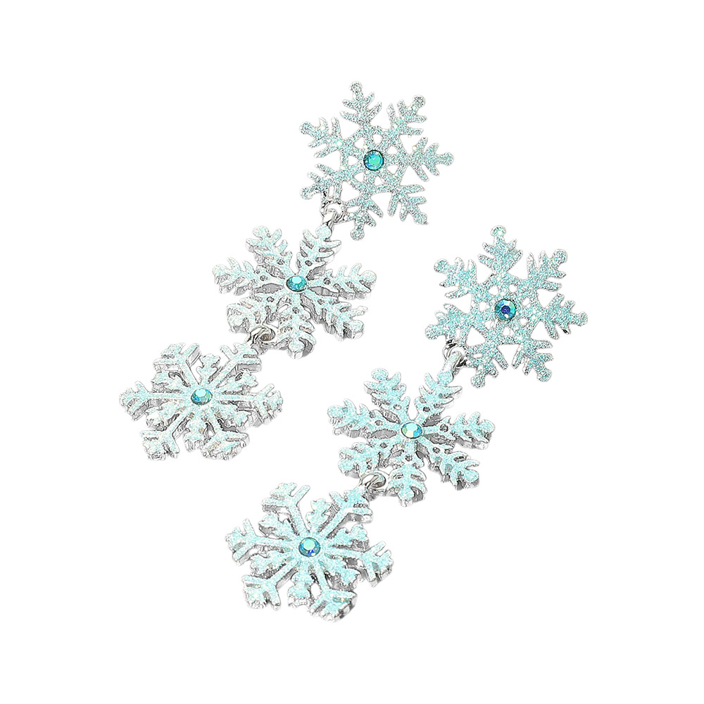 Details • Size : 0.8" X 2.75" • Post Back • Add a frosty sparkle to your winter wardrobe with these charming snowflake drop earrings. Featuring a layered snowflake design with glitter detail, they're ideal for holiday parties, seasonal events, or a festive everyday look. • Lead and Nickel Compliant
