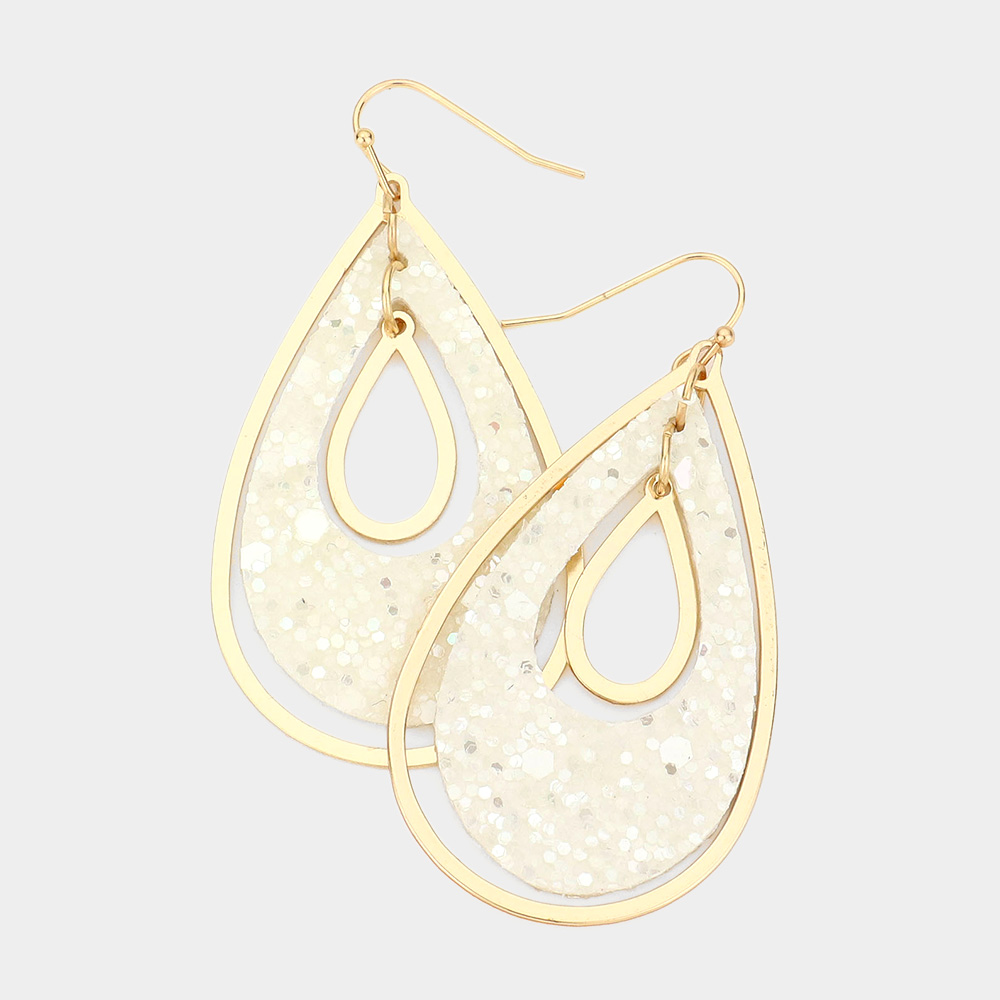 Glittered Triple Triangle Link Dangle Earrings