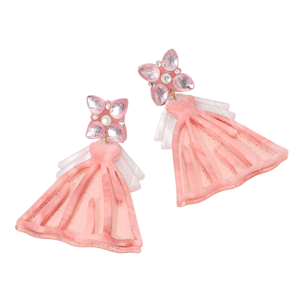 Glittered Wedding Dress Dangle Earrings