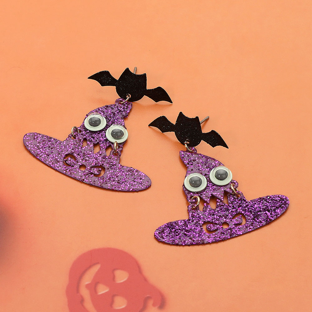 GLOW IN THE DARK Halloween Bat Witch Hat Dangle Earrings