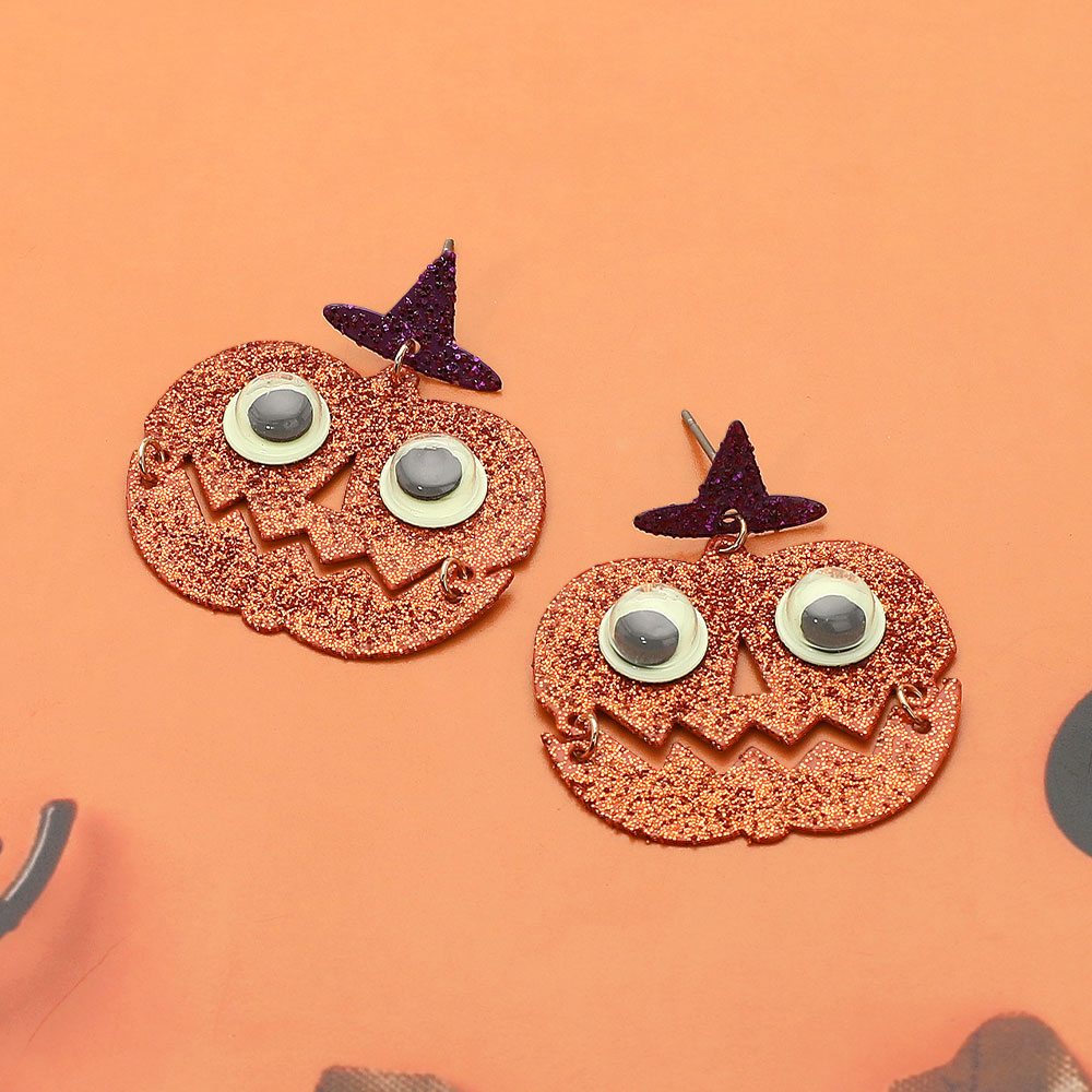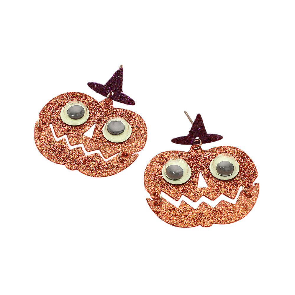Details • Size : 1.25" X 1.4" • Post Back • Fun and spooky pumpkin face earrings perfect for Halloween! Featuring wiggly eyes and glow-in-the-dark elements, these festive earrings add a playful touch to your costume or seasonal outfit. • Hypoallergenic • Lead and Nickel Compliant
