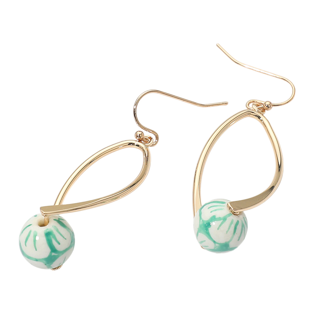 Gold Dipped Floral Ceramic Ball Accent Abstract Teardrop Dangle Earrings Gold Dipped Floral Ceramic Ball Accent Abstract Teardrop Dangle Earrings