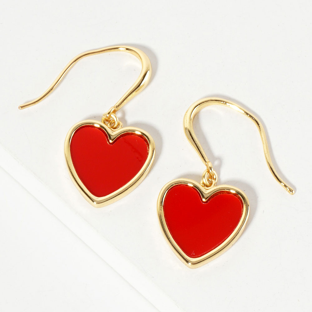• Elegant heart dangle earrings featuring a smooth heart-shaped drop with a enamel style finish. Lightweight hook design adds effortless charm for daily wear, special occasions, or gifting. A timeless accessory with a soft, romantic touch.