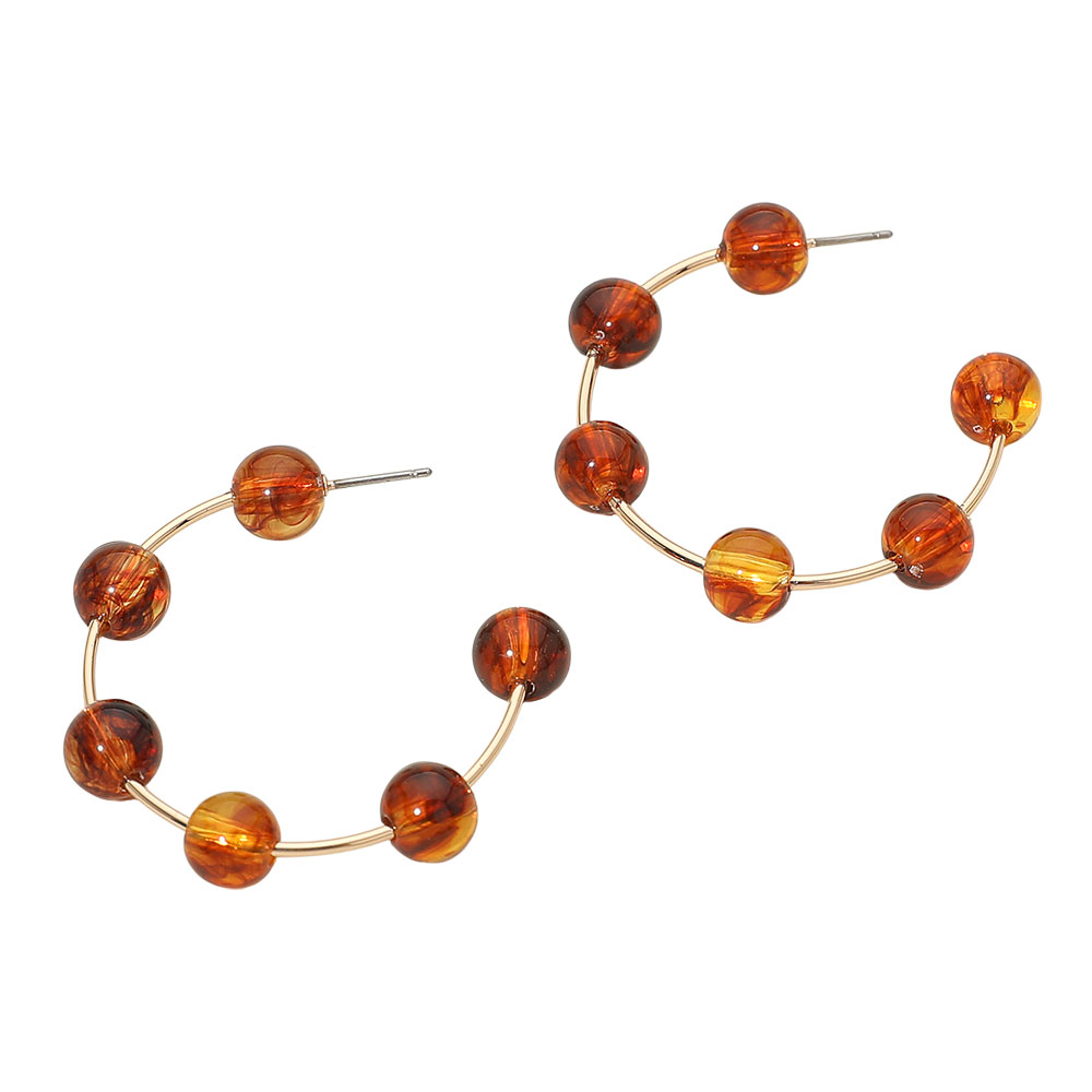 Details • Size : 1.75" X 1.75" • Post Back • Modern beaded hoop earrings featuring evenly spaced round bead accents along a curved open silhouette. Designed to add texture and movement, these lightweight statement hoops are ideal for everyday styling, boutique assortments, and trend-driven accessory collections seeking effortless polish and versatility. • Gold Dipped • Hypoallergenic • Lead and Nickel Compliant