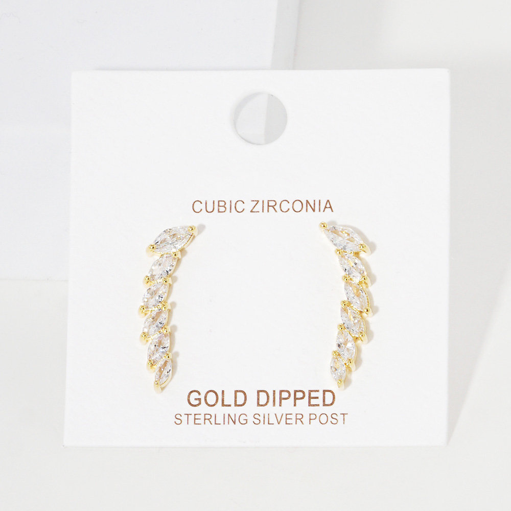 Gold Dipped Marquise Cz Drop Sterling Silver Post Earrings