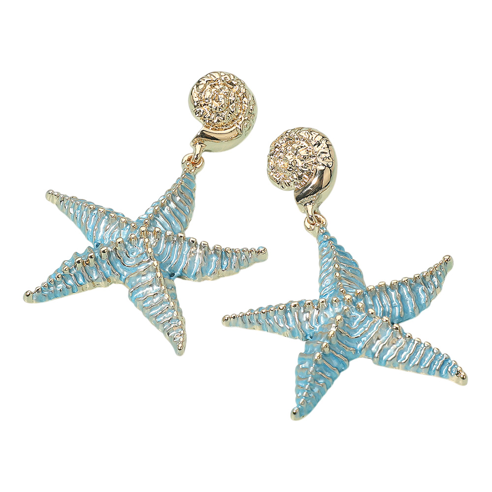 Details • Size : 1.8" X 1.75" • Make waves with these starfish statement earrings, featuring intricate detailing and bold design. Perfect for summer outfits, beach vacations, or adding a touch of coastal charm to your everyday style. Lightweight and eye-catching. • Gold Dipped • Lead and Nickel Compliant • Sterling Silver Post
