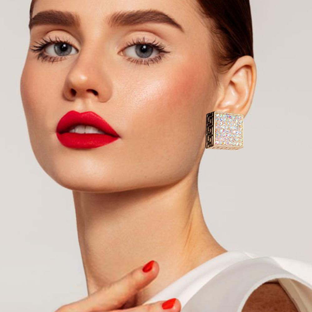 • Modern square stud earrings adorned with sparkling accents for a bold and elegant look. Their geometric design makes them perfect for both casual and formal outfits, offering a chic statement style that pairs seamlessly with dresses, blazers, or everyday wear for standout sophistication.