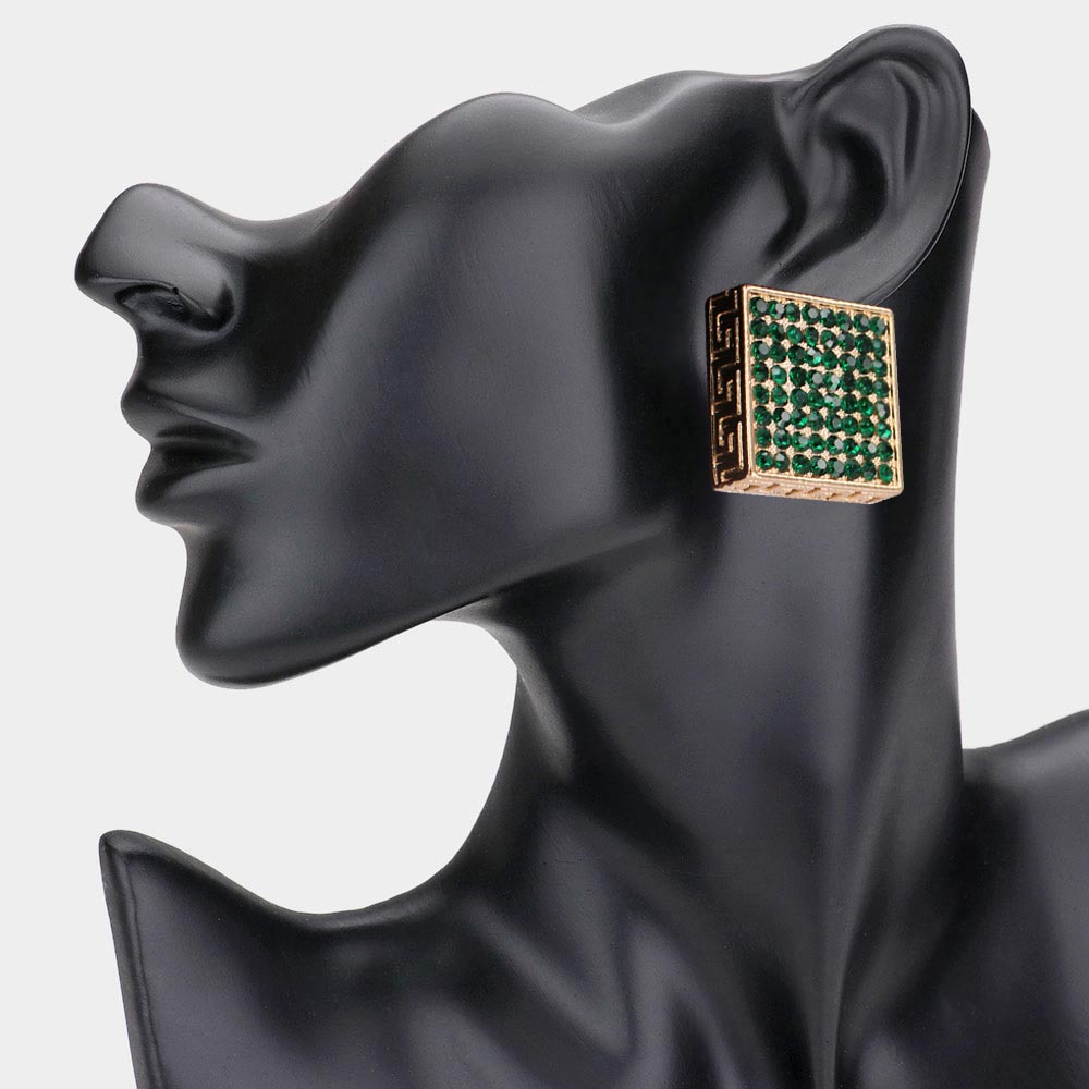 Greek Pattern Detailed Rhinestone Embellished Square Earrings Greek Pattern Detailed Rhinestone Embellished Square Earrings