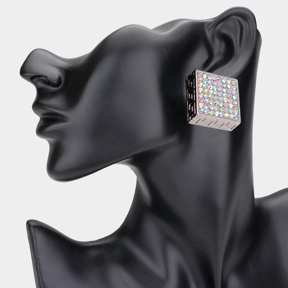 Greek Pattern Detailed Rhinestone Embellished Square Earrings Greek Pattern Detailed Rhinestone Embellished Square Earrings