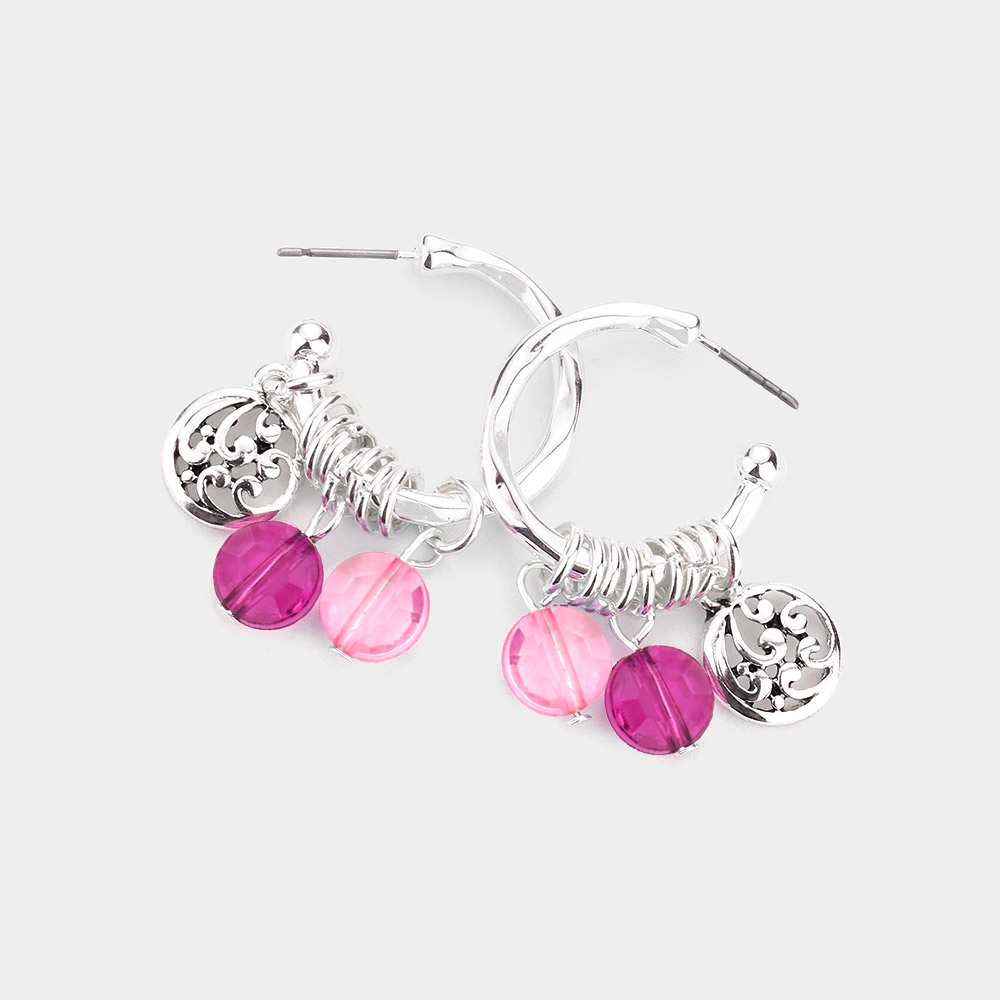 Half Hoop Filigree Metal Round Lucite Bead Dangle Earrings