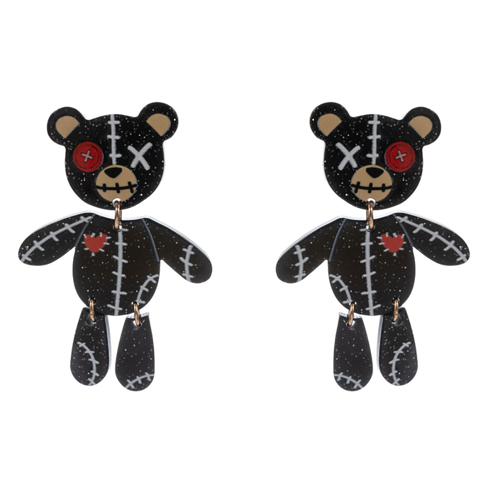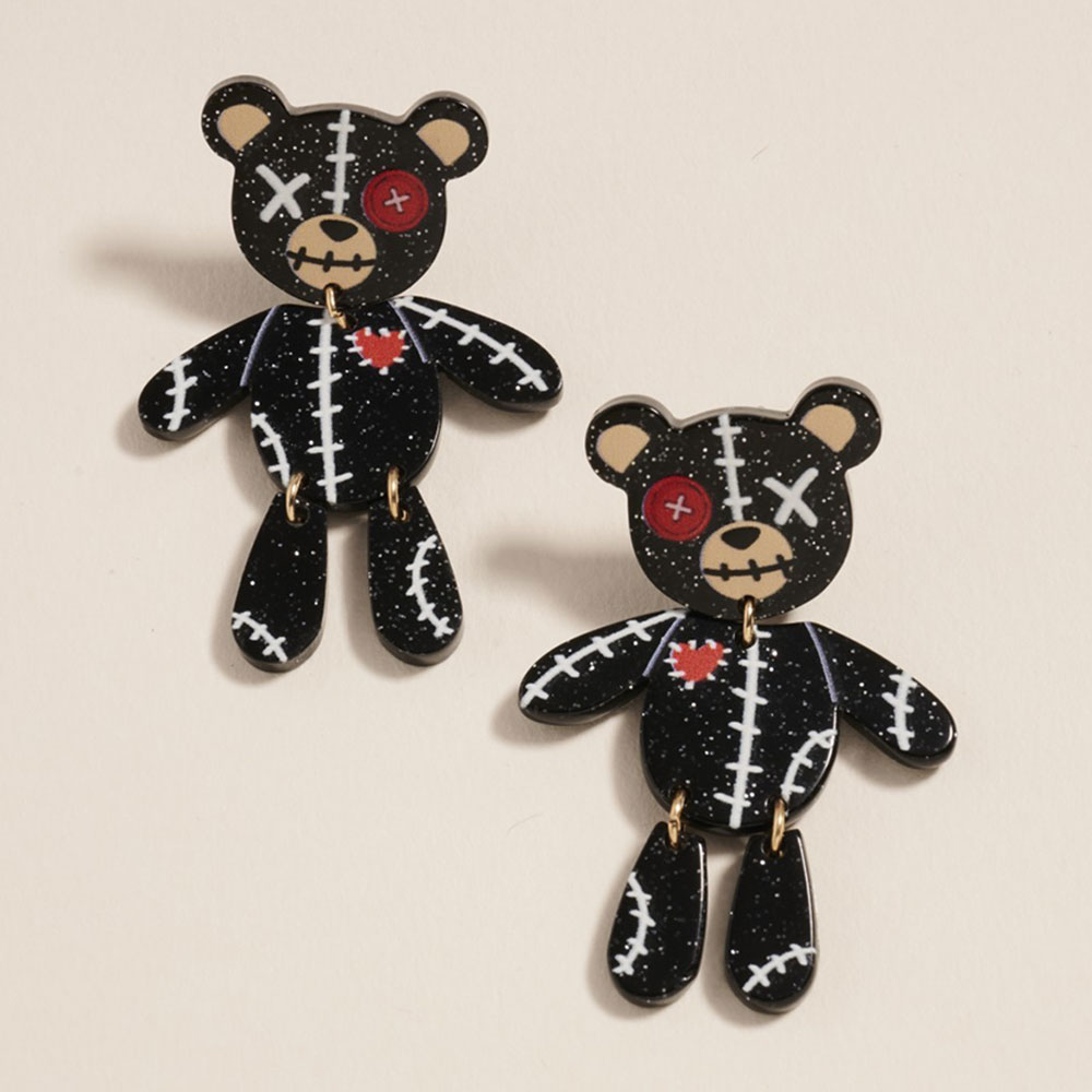 • Show off your spooky-sweet side with these stitched teddy bear earrings, featuring button eyes, detailed patchwork, and a broken heart accent. Perfect for Halloween, horror-themed parties, or adding a playful edge to your outfit with a unique creepy-cute twist.