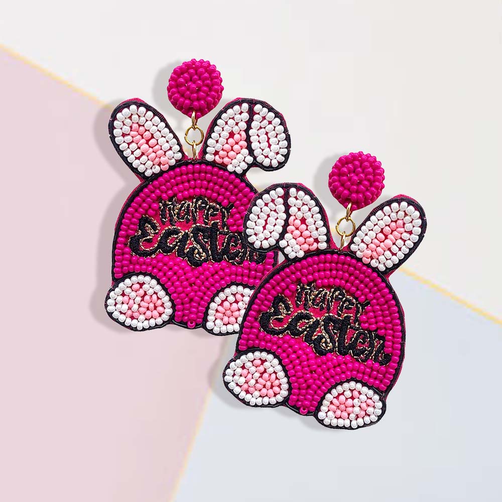 Happy Easter Felt Back Seed Beaded Bunny Dangle Earrings