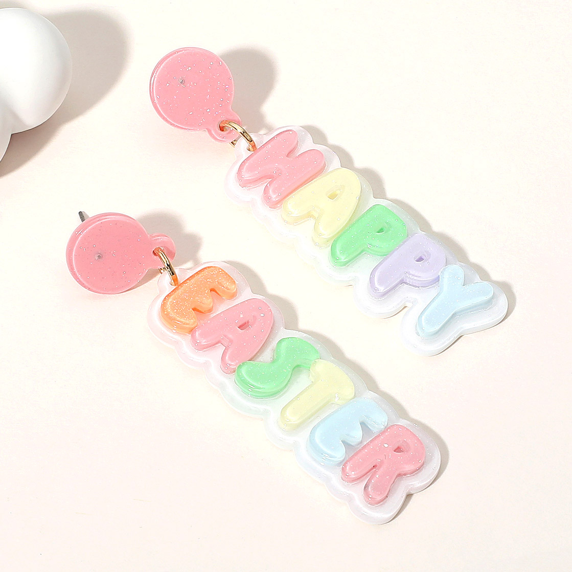 HAPPY EASTER Resin Message Dangle Earrings